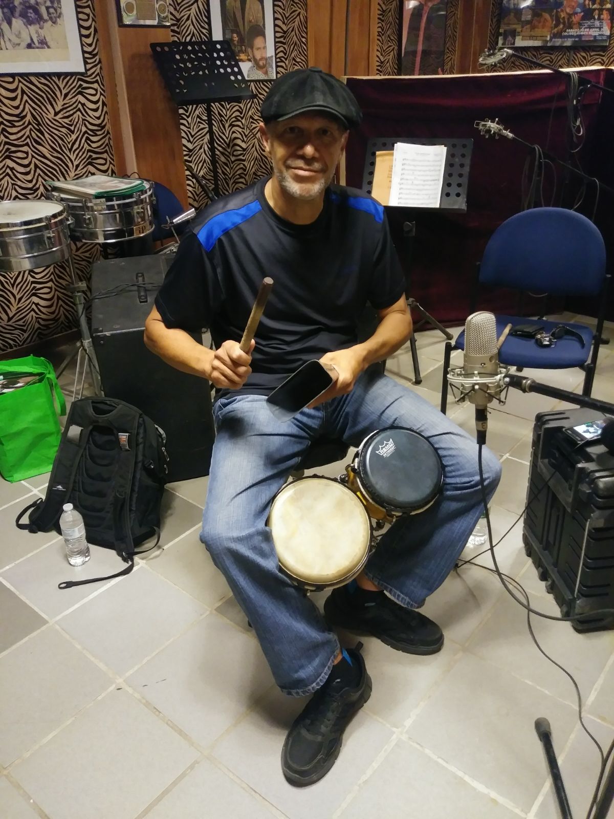 Saludos, this photo was taken on Father's day eve. Playing with Conjunto Akangana. On my left is Monty El Maraquero in remote control mode.