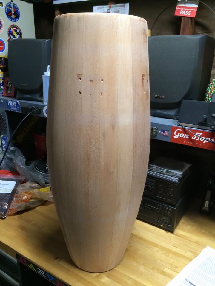 I happen to have stumbled across a vintage Gon Bops super quinto in oak. There was quite a bit or repair needed as the staves separated as soon as I removed the bands.