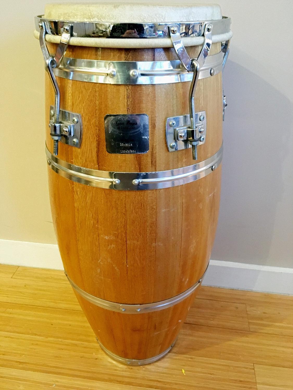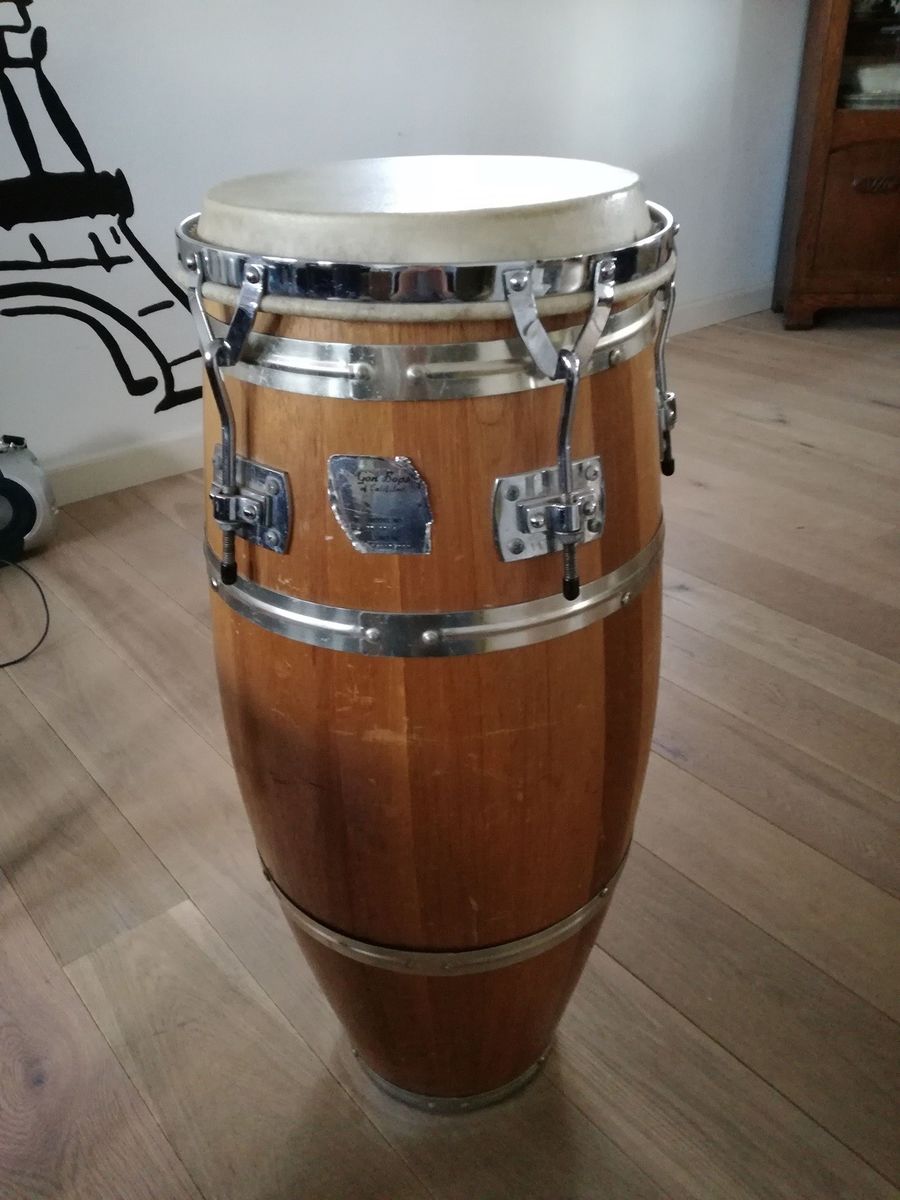 ) among the best drums I ever heard, with Juniors. His are an explicit and declared reference to Vergaras. FYI, every Mamey conga costs about 1000 € (precisely from 900 to 980 €). But it's (almost ) a one man work : he makes everything, cutting staves (no steam bending), gluing them, mounting skins, staining etc. The only external help is an iron worker (an artist too, whom I also happen to know) who makes all the hardware for him. And I could see "in real life" that nothing is neglected, every detail counts. For instance, they use bronze nuts to tune the lugs (exhaust manifold nuts), because, as Mamey told me, "steel eats steel". Bronze being softer than steel, there's less friction, which preserves the thread and makes it last longer. And since we're in Europe, and he's using metric system, he uses exhaust manifold nuts of Fiat 500. He gave me the tip, and that's what I use now.