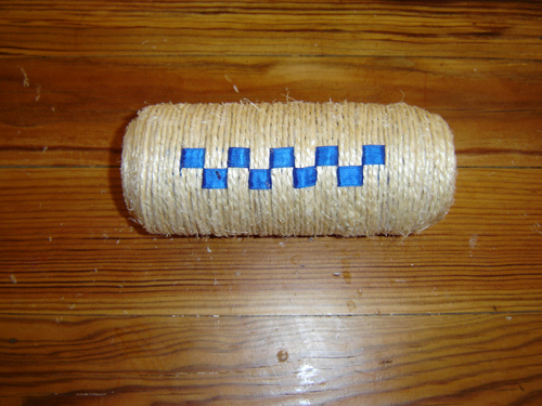 ...As you go down the body of the can, some of it will still show behind the string, don't worry, this will be covered by the second "coat"...