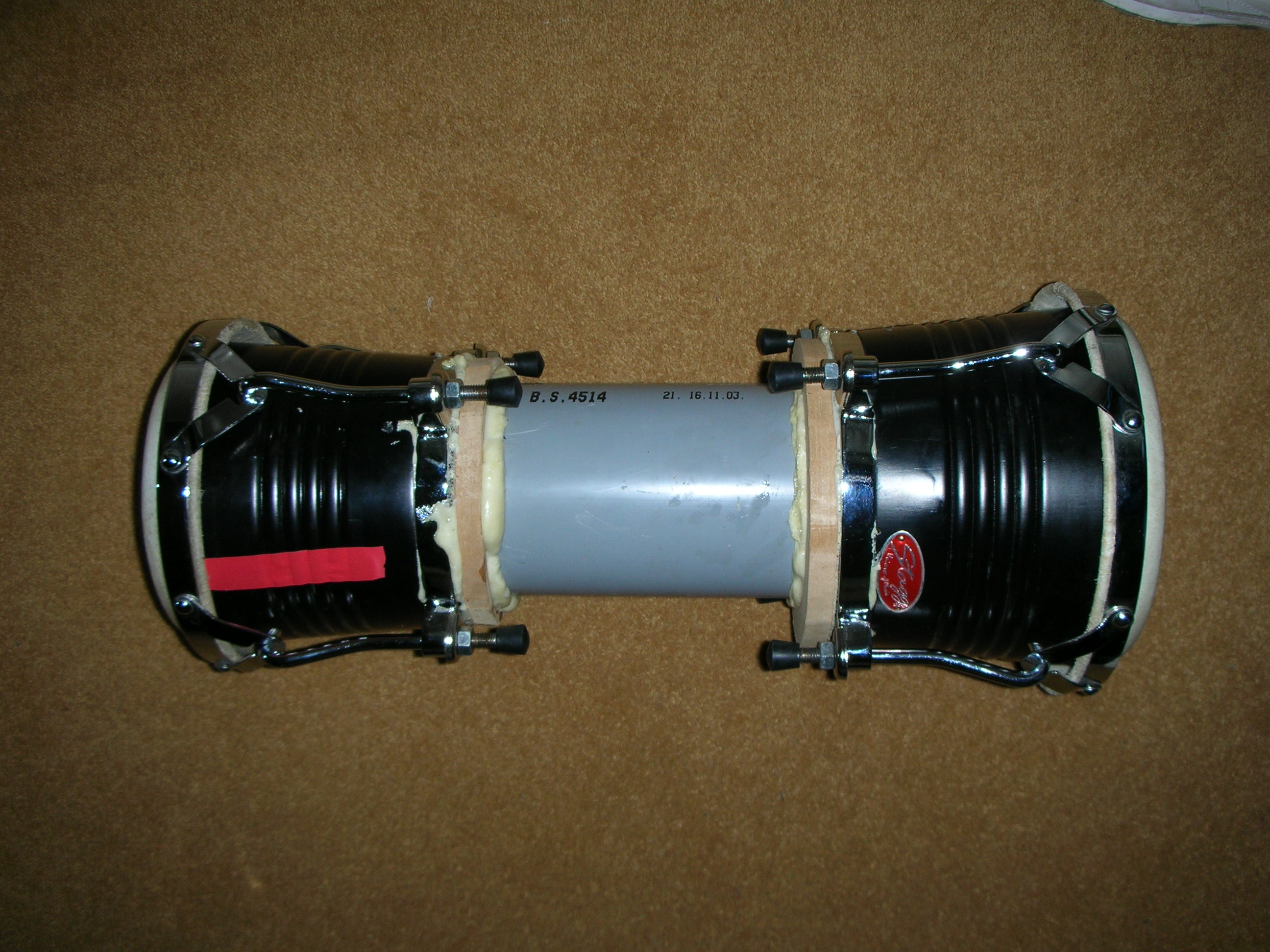 A pair of cheap bongo, plastic pipe, gorilla glue...