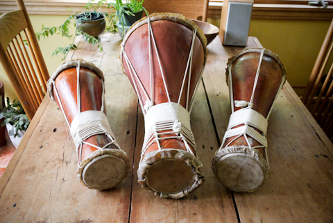 In the video, you'll notice the okonkolo is from a different set. It needed to be pulled the day we recorded and the guy preferred to use another drum.