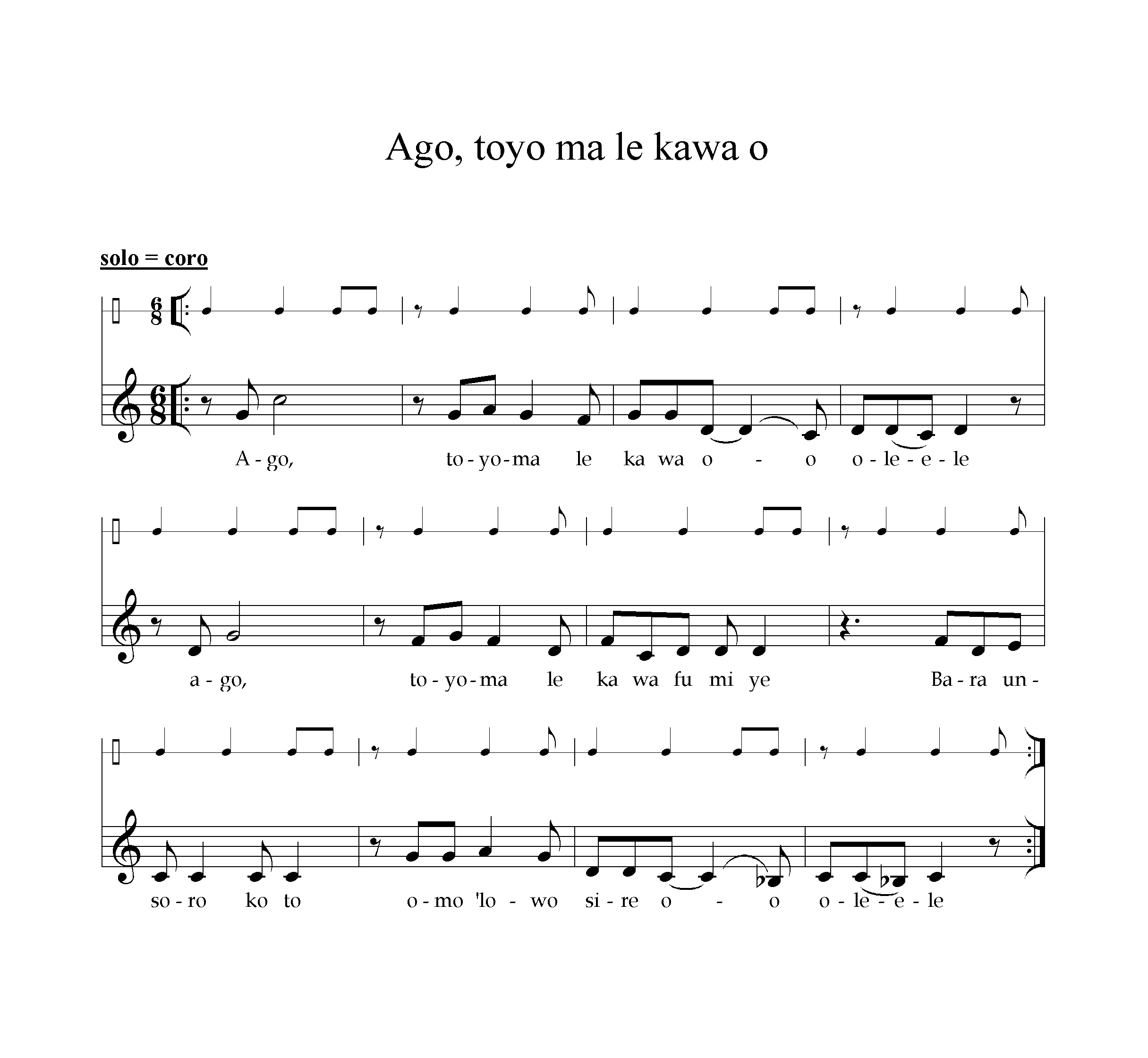 Ago, toyo ma le kawa o, olele