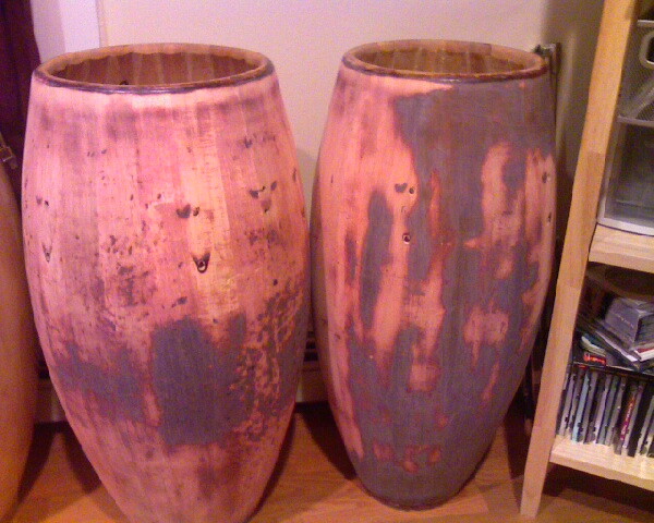 Got thes drums to restore. they are pretty beat up the conga has a crack thats about 20 inches long that can be fixed up with no issue. some of the hardware will need to be replaced.