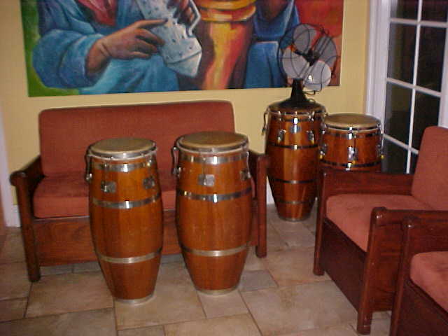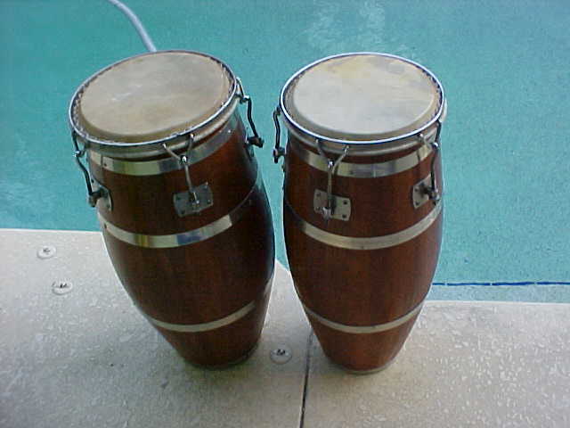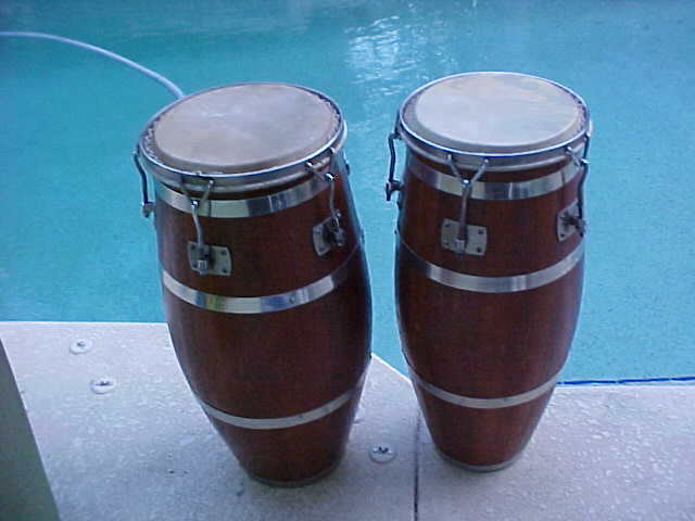 At the moment I'm getting divorced and selling some of my sets, I got plenty of stuff that I got from Mongo (his Vergara bongos, 100's of his personal photgraphs......) Julio need $675 and told me to try to sell them for him. The macho is 10 3/4" and the hembra is 11 1/2", I know congas and these are "old Gon Bops", they have a date of 2-66 on the inside and also read "A. Peraza". Back in those days Armando used to play with Mongo. Those are the details, here are the photos. Any interest call me.