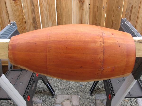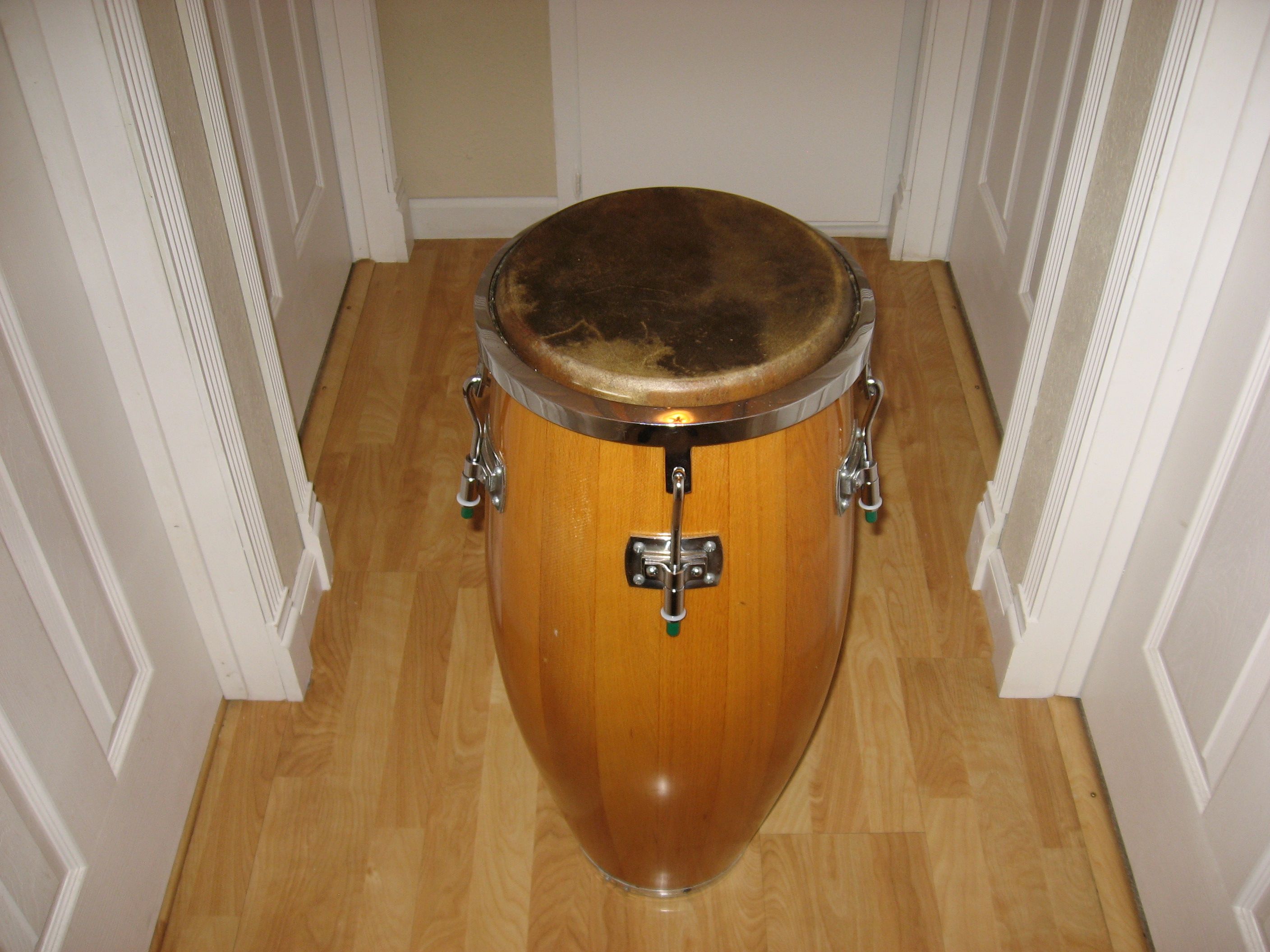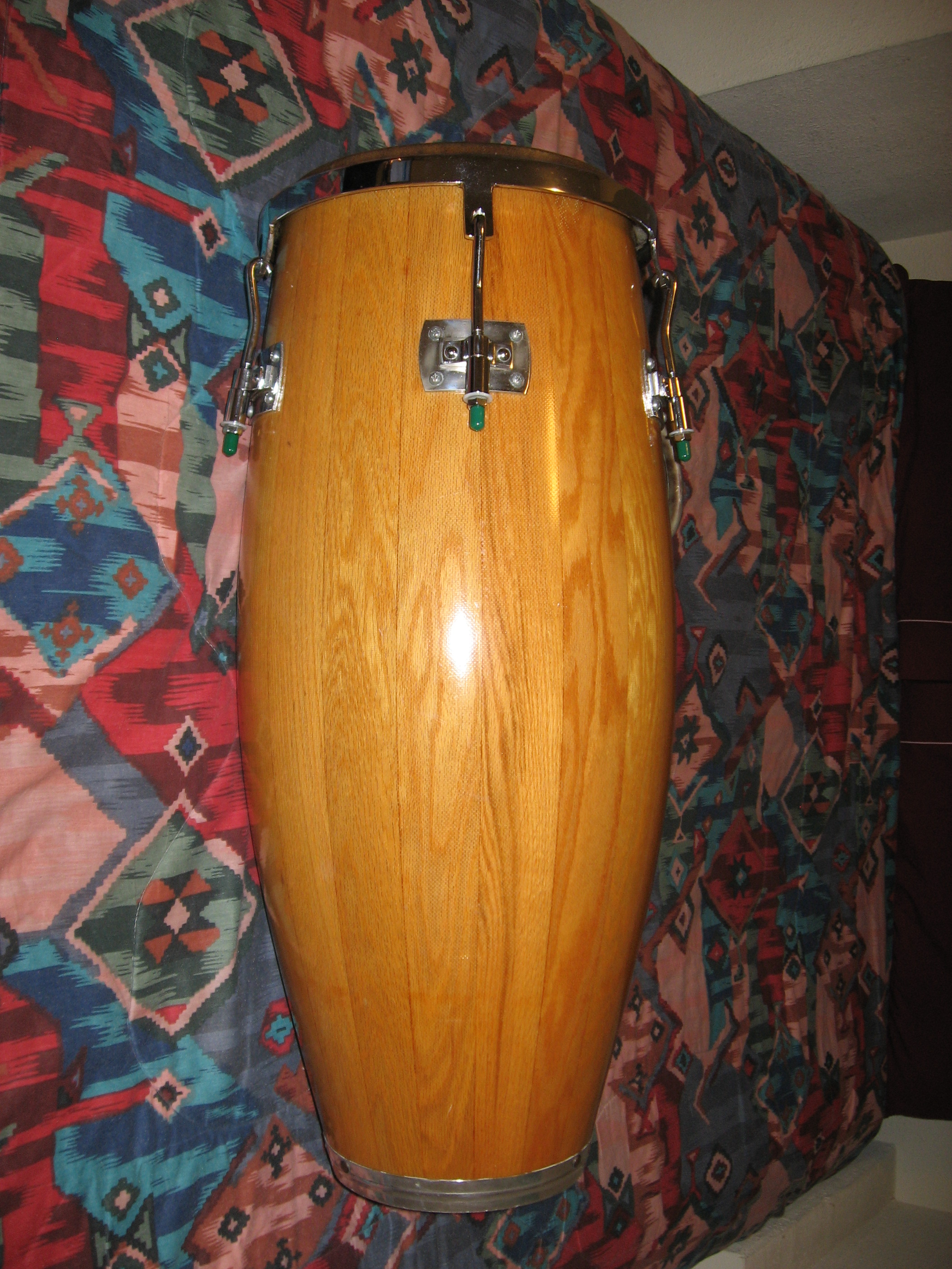 Alright guy's been busy. I did the conga, not with Watco, buff it out with a 1600 rpm buffer. But first i sanded it down, put a coat of Amorall on it to bring out the color and then buffed it out. It flat in color but look's great but i still wonder if i should Watco it. The tumba was stained by me in 1983 and i applied a poly finish on it. It wasn't a great job and i had to put some wood putty on it to cover the gouges. I would like to sand it down and match the conga but it might not look like the conga but i gotta try cause the conga looks great for being almost 30 year's old