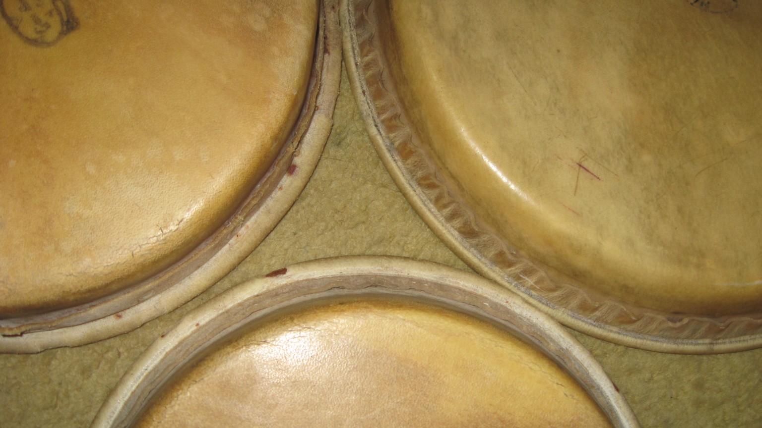 Two 1970's original Gon Bops heads (11.5" Quinto, 11.75" Conga). Plus original head from 70's LP Palisades PArk fiberglass tumba (14.5") The edging is cracked, but the hoops are still worthy. Anybody interested PM me. Don't really have a price in mind, so make an offer if interested.