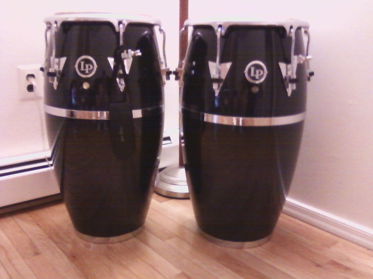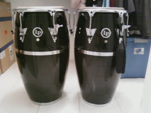 whats up fellas just wanted to post these brand new lp original models , still in boxes i actualy took them out to reskin them , they are brand spanking new , an 11 3/4 tres golpe & 12 1/2 tumba , black with chrome hardware ...
