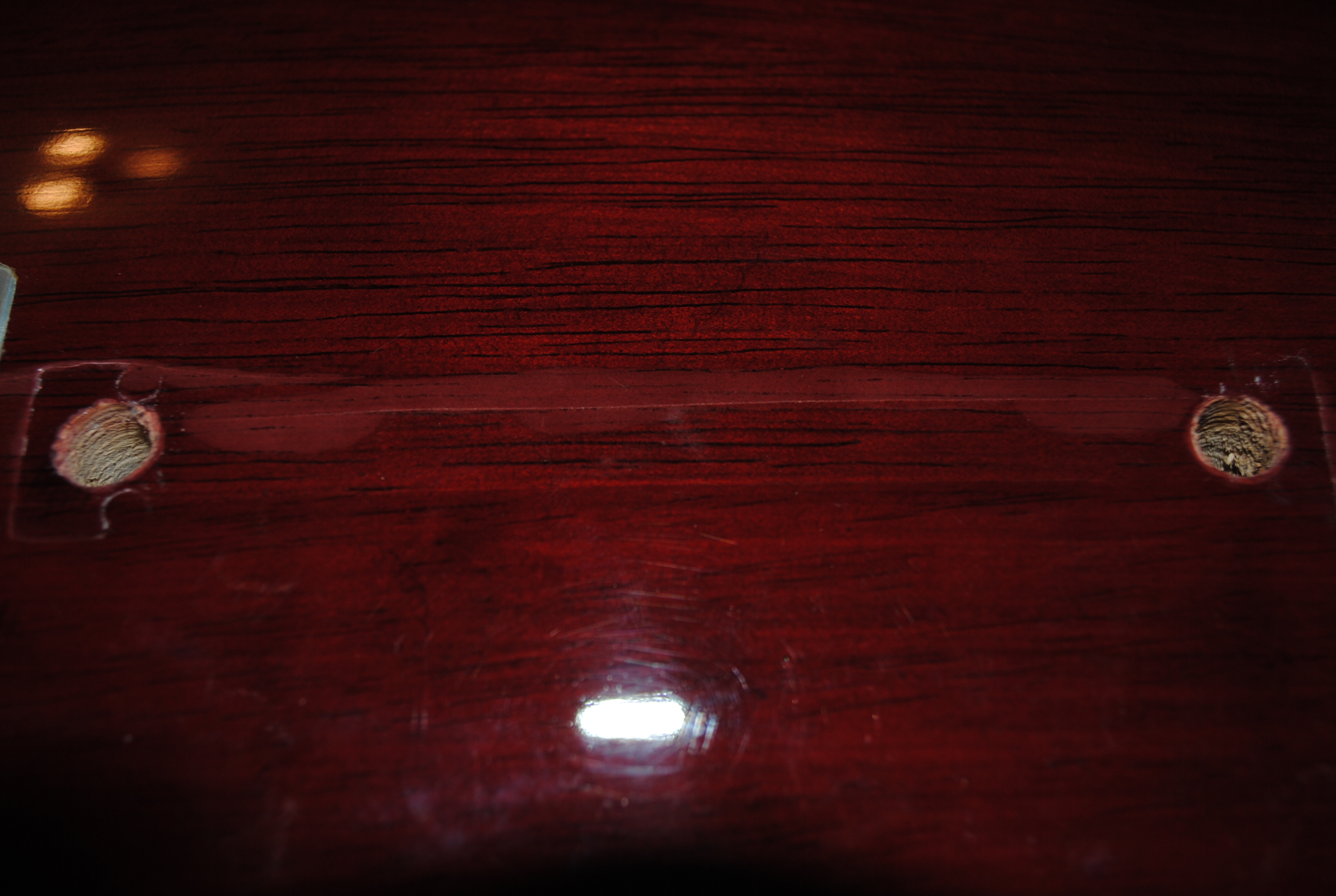 I have a pair of LP Classics in wine red that were water damaged. There are a few vertical cracks that I had thought went through to the wood. I cut away some of the coating (polyurethane, correct?) around the cracks and the cracks are only present on the coating. I know I could remove the coating and redo the entire finish but I'd like to spot fix it. I've attached a photo of one of the cracks that I didn't remove the coating from.