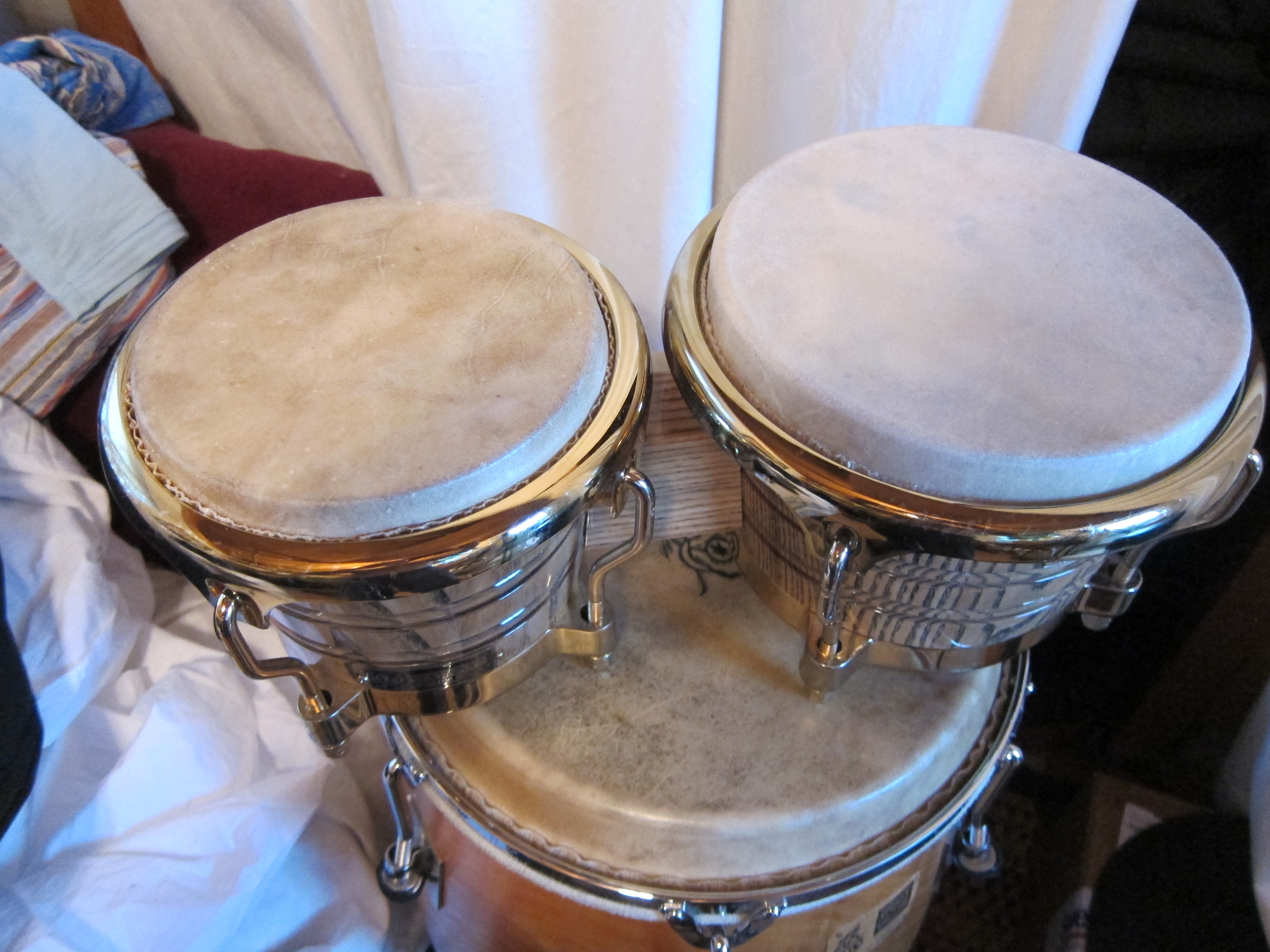 My new Manito Percussion pre mounted Mule (macho) and white steer (hembre) came today. I put them right on my Giovanni bongos. OMG! What a difference. Perfect fit, too! The sound difference is amazing. I pulled the hembre a little extra tight until it breaks in then I will lossten it up a bit. Why don't they put these on at the factory instead of those buffalo skins. A world of difference. Thanks Manito! Great job.