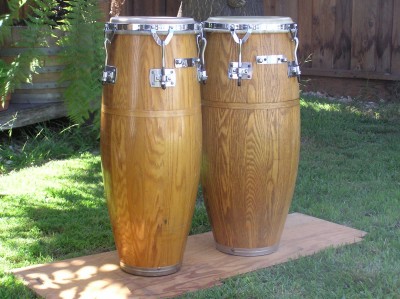 This set of Gon Bops are on ebay for 950 buy it now if interested. They are a matched set except for the side mounting brackets. One of the drums has these side brackets that I have never seen before on a Gon Bops and wondered if anybody knows about these or has seen them? Just curious as this is totally new to me .