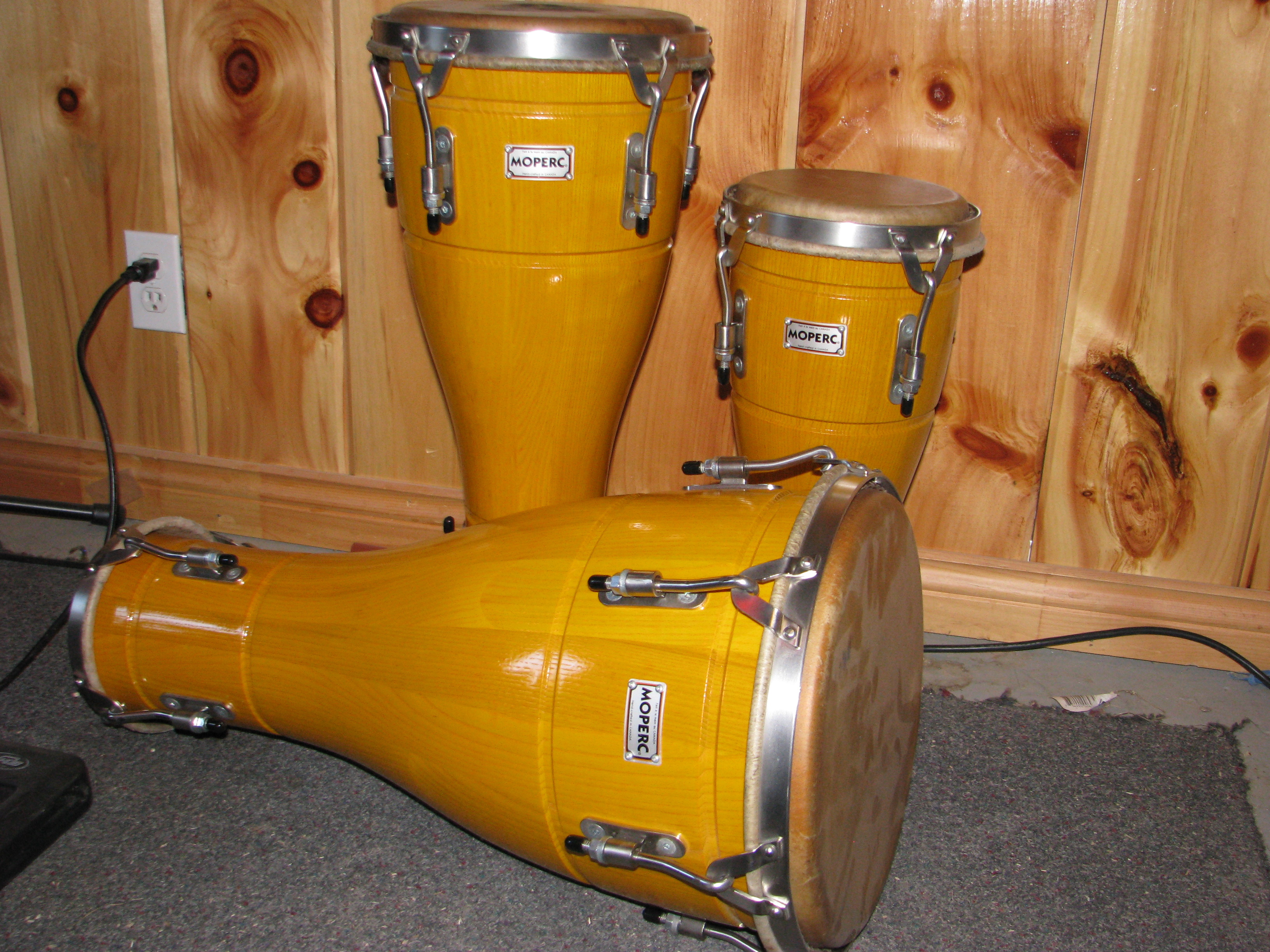 This post is a little off-topic ... not being about congas ... but hey I started this thread so I can threadjack it ... right? Those three yellow batas on the http://www.moperc.com website (look under used) are ... drumroll please ... MINE! I've already paid. You hungry dogs can't take them this time. I got upstaged last time I tried to buy a sale-price Moperc by one of you guys if I remember right. No hard feelings. It's dog eat dog. But this time ... the meat is mine dog! They'll arrive in due time. But the deal is sealed and the payment has been completed. So stand down, stand back, and admire!