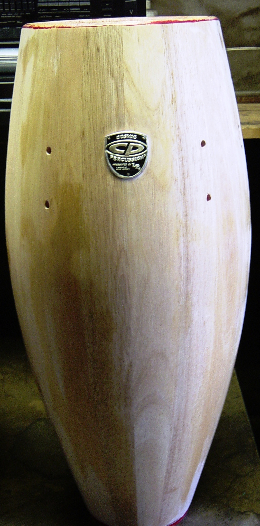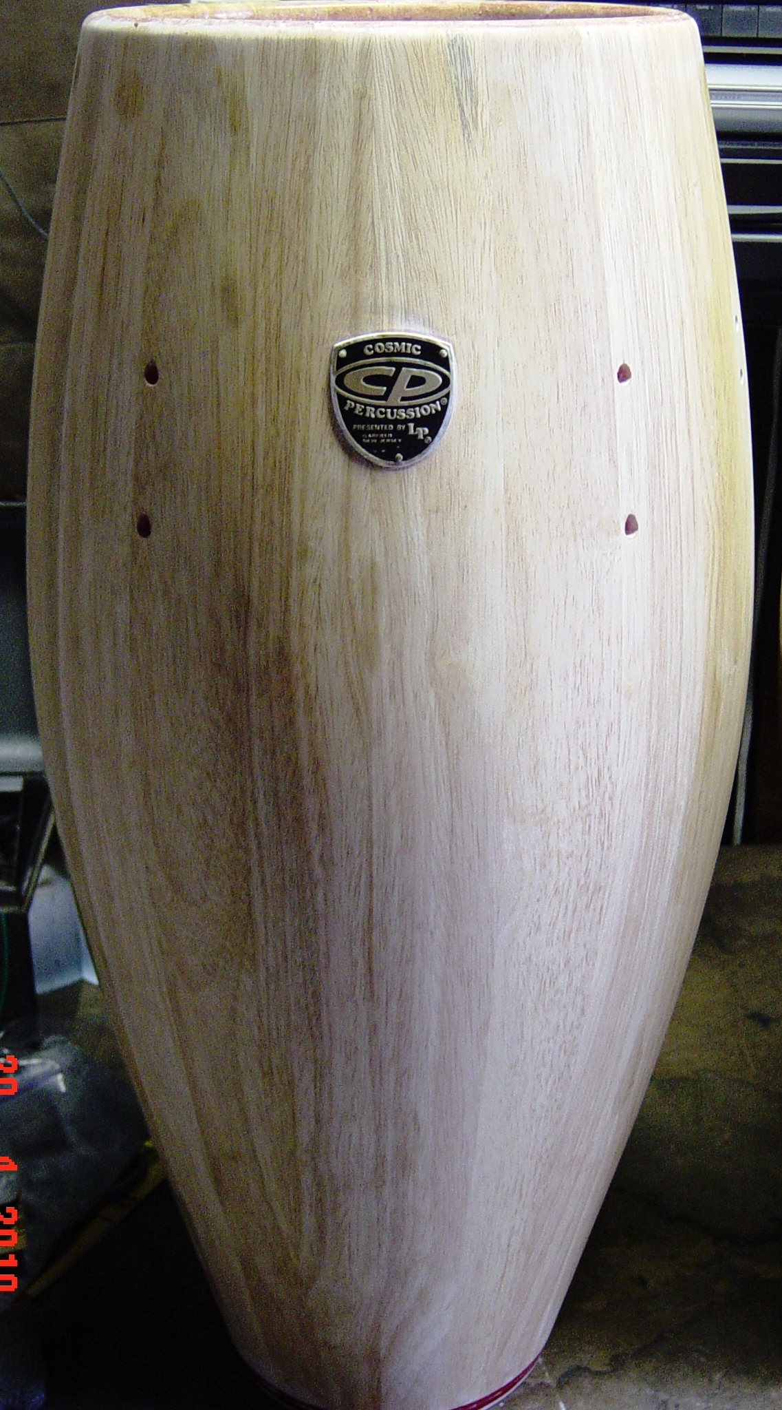 Well after realizing that I did not have the experience to restore my newly acquired Requeña I decided to take on another project, re-finishing my CP’s. I figured that this would be a good place for me to start building my experience. I took the pictures with the hardware removed yesterday and today I made a little progress. Man I did not realize how labor some it would be to remove the factory finish. I have only gone as far as sanding the 10.0 conga with 60g corse Sand paper, I’m not quite sure what to use next so Ill go searching within the forum to try and gain some information. For now I have to stop working on these and start cutting the grass if not my wife will start complaining about me taking to much time with my congas. Anyways, I have attached some pictures to share my progress with all of you conga junkies.