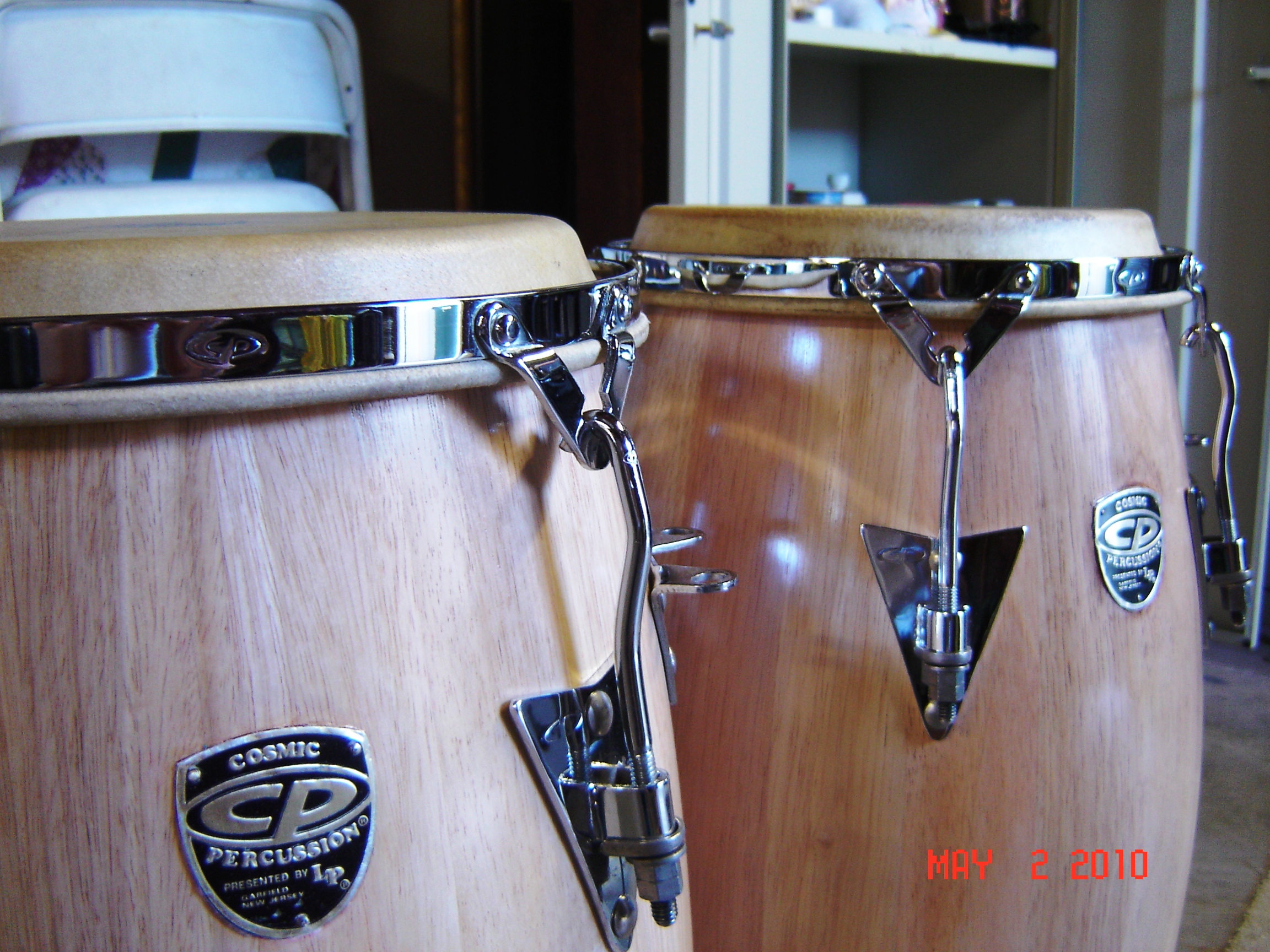 Finally finished!!!!! I chickened out and decided not to stain so I went with 3 cotes of poly to bring out the natural wood grains, they came together very nice. I am very happy with the results and am glad I took this route. The hardware polished out very nice so I had no need to re-chrome. Here are some pictures for all of you conga junkies to enjoy. I would like to give a special thanks to my very good friend David Perez for blessing me with these great drums, no brother you can't have them back :P , and also all of those who encouraged and supported me in this project thank you very much fellow congueros, it was truly a labor of love as I had lot's of fun with this project. Oh I forgot to mention...they sound very nice too.