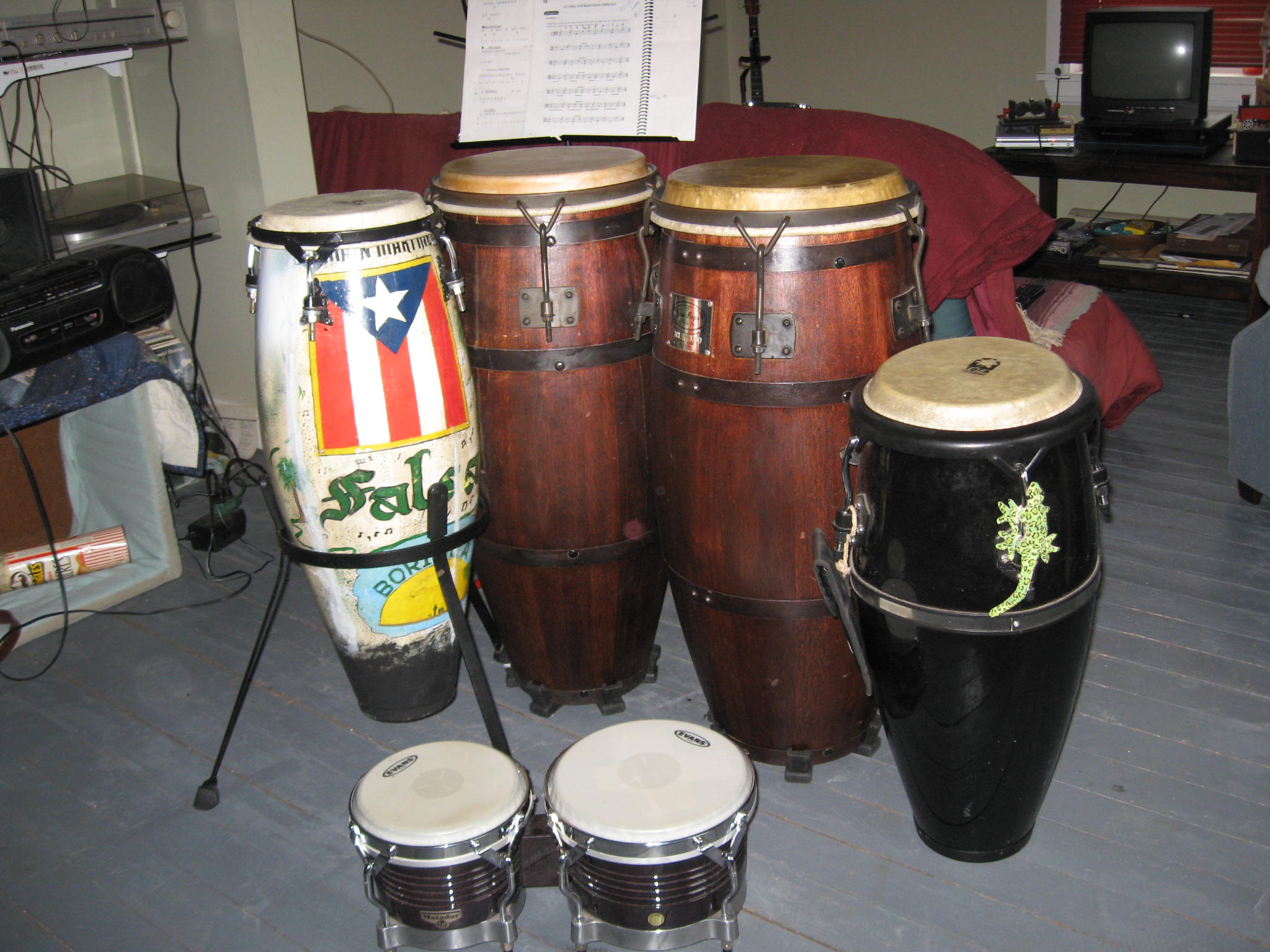 Thebreeze wrote:I have 2 Juniors Mahogany, 2 Gon Bops Mahogany, 1 Gon Bops Oak, 1 Valje Oak, 2 LP Patatos, 2 Cosmic Percussion ( older 28" models ), I LP Classic Tumba, 1 King Conga, 1 vintage Meinl Oak Tumba with striped pattern, and last but not least, 1 solid shell Conga that in my opinion is much superior than any other solid shell drum I have ever seen. I can send pics to anyone interested in seeing it. It has 7 tuning hooks and is a work of art.