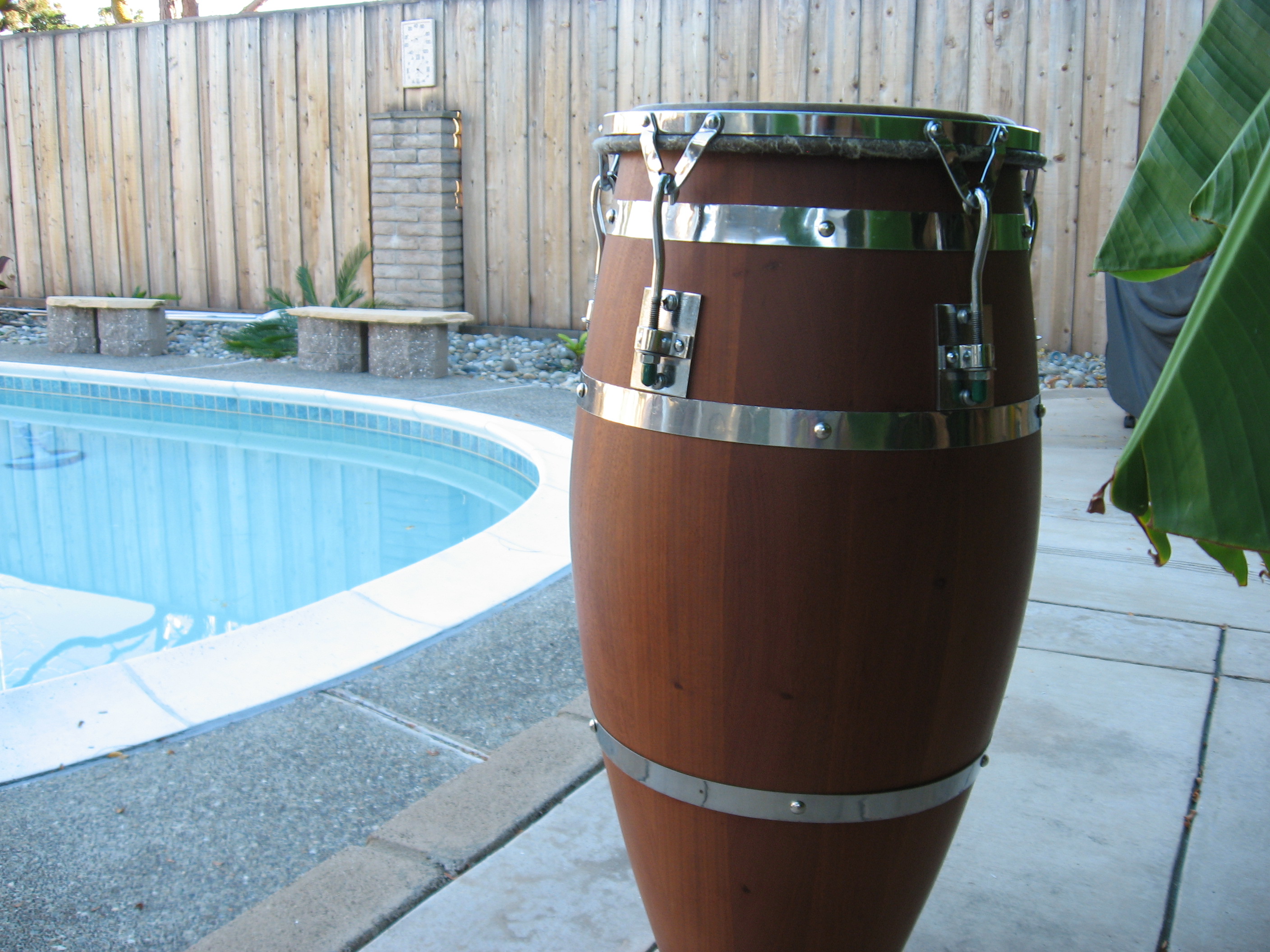 Alright guy's been busy. I did the conga, not with Watco, buff it out with a 1600 rpm buffer. But first i sanded it down, put a coat of Amorall on it to bring out the color and then buffed it out. It flat in color but look's great but i still wonder if i should Watco it. The tumba was stained by me in 1983 and i applied a poly finish on it. It wasn't a great job and i had to put some wood putty on it to cover the gouges. I would like to sand it down and match the conga but it might not look like the conga but i gotta try cause the conga looks great for being almost 30 year's old