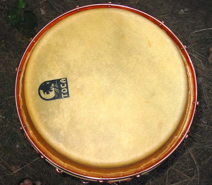 In case this thread was generating any interest in these drums, I included a photo showing the thickness of the tumba head. I also included a photo of the quinto in natural, indirect sunlight to give another impression of the hardware color.