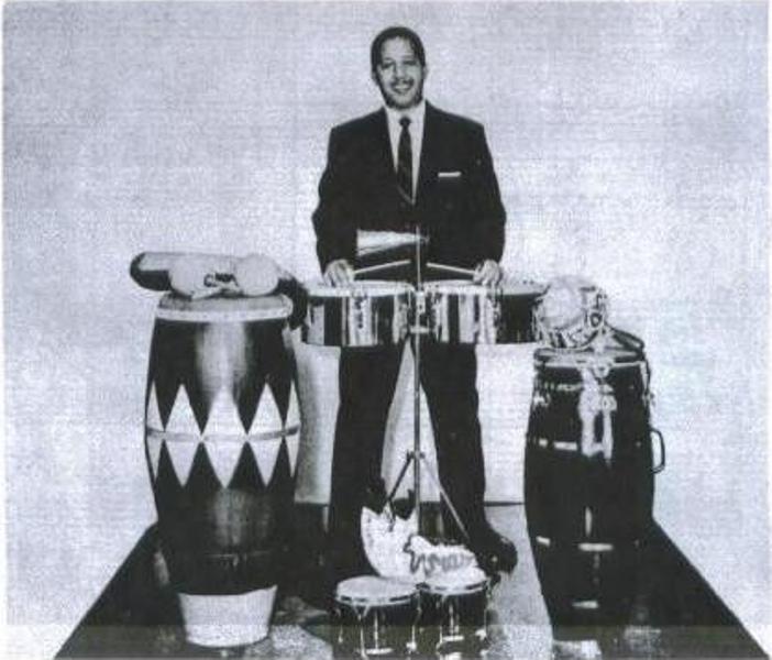 Aha got one of my photo that is one of many photos I got of Ubaldo Nieto was my teacher for a few years that photo was used in book How to play Latin American rhythm instruments.The timbales in photo are Leedy but from Slingerland era not Conn.the bongos are the one of the Vergaras that I own.The conga is a Requena That drum belong to Luis Morales one of the Morales brothers. Just came in to my head would you like recreate that photo I have the timbales you have conga and I have a friend that has that conga drum with tacks. painted same way.This time in color