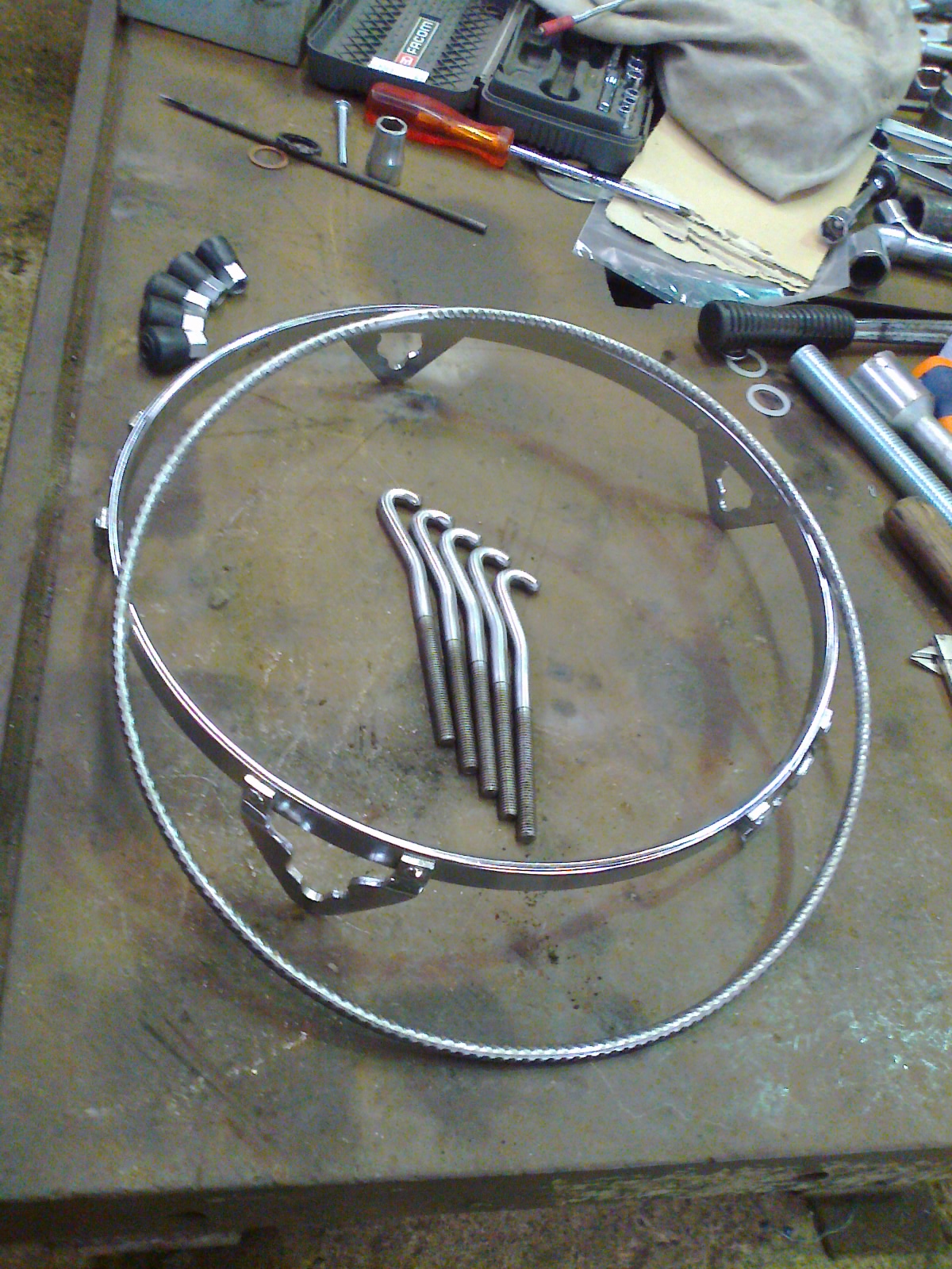 salzfaas wrote:I have had to do some more work on the quinto as it has splitting at the rim.I went to a metal worker today that makes replica parts for old Bugatti racing cars .he made the alma out of 1/8 " mild steel made it absolutely round and a snug fit.It has had 2 functions one to bring the top into perfect round again as it was slightly out and to strengthen the whole stucture.I bolted the staves individualy so there is nowhere for any of them to go now they have to behave.The flexibility of the top has been lost but in this case it is a good thing .I hope it is not going to loose resonance from this act.I did this instead of the fiberglass, as You never know it might all have to come apart again!!!(hope not).I am awaiting for a France percussion ring,tensioners and flesh ring from our super hero Congalou who is making the last 3 for me.I will tell you how I get on when they arrive.