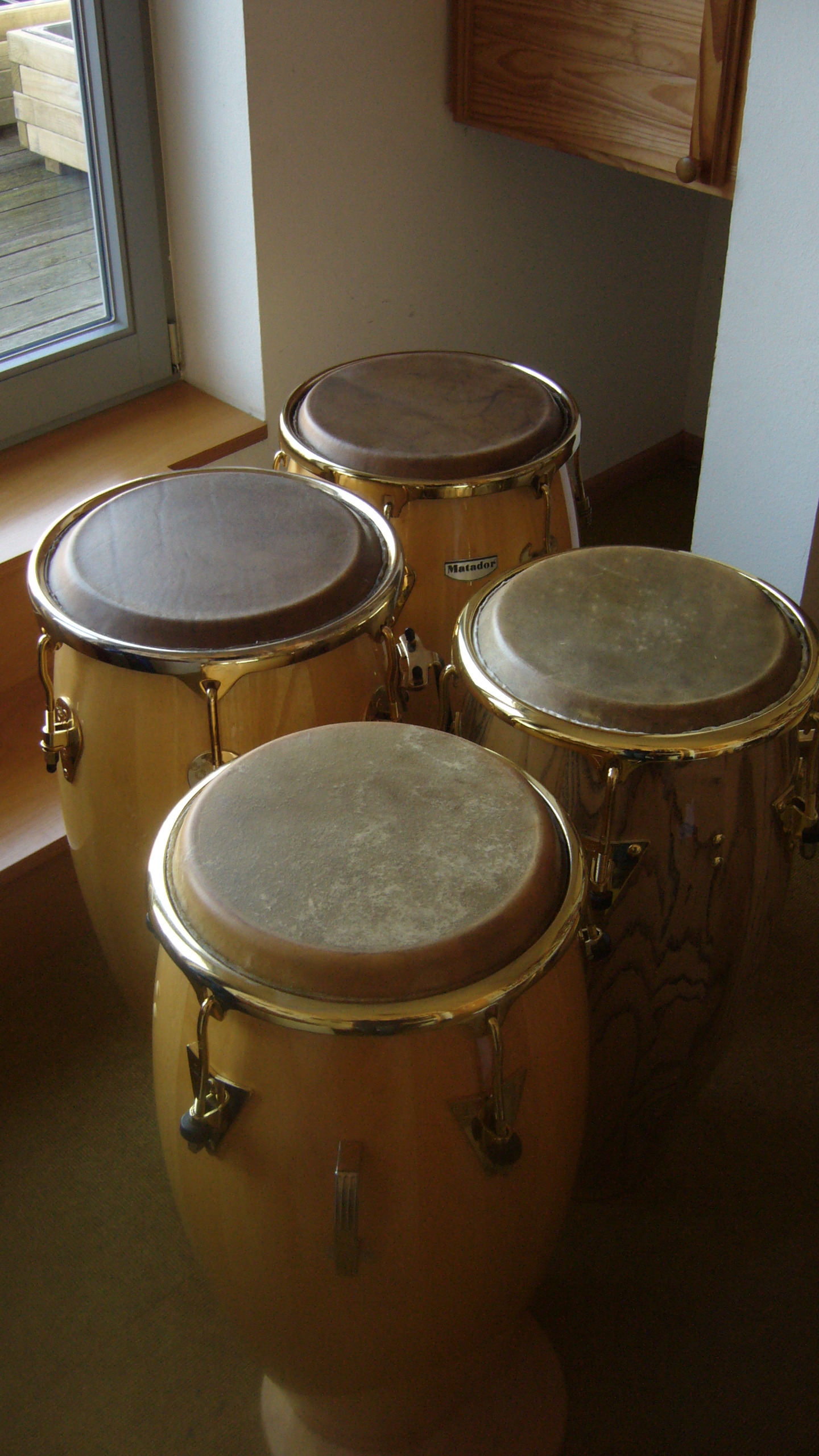 winter cold and alternate heating etc., so I have the congas I practice most on in