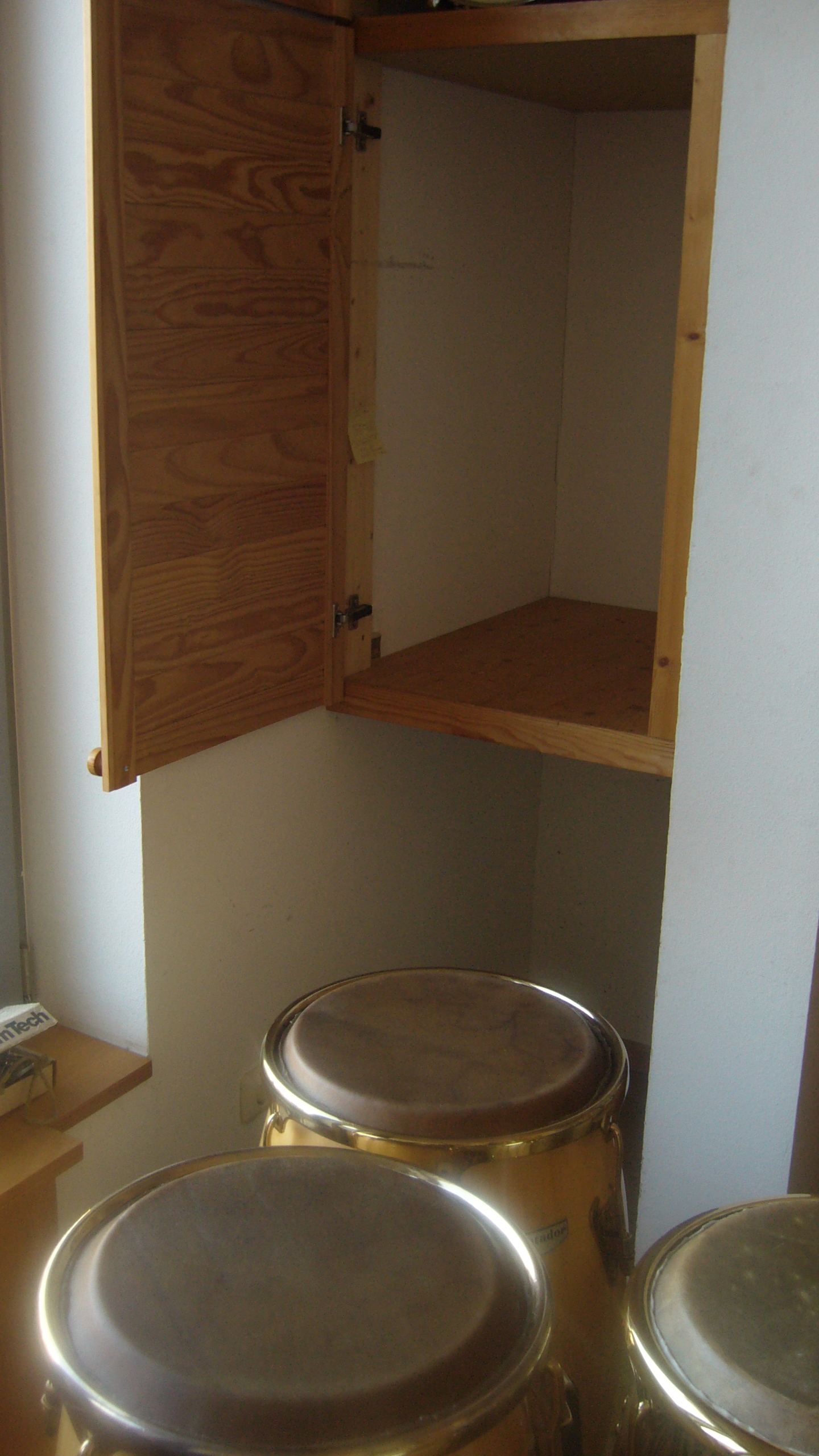 ...a cupboard that contains what is most important: Two timbales sets and four congas (when I do not need them momentarily)!