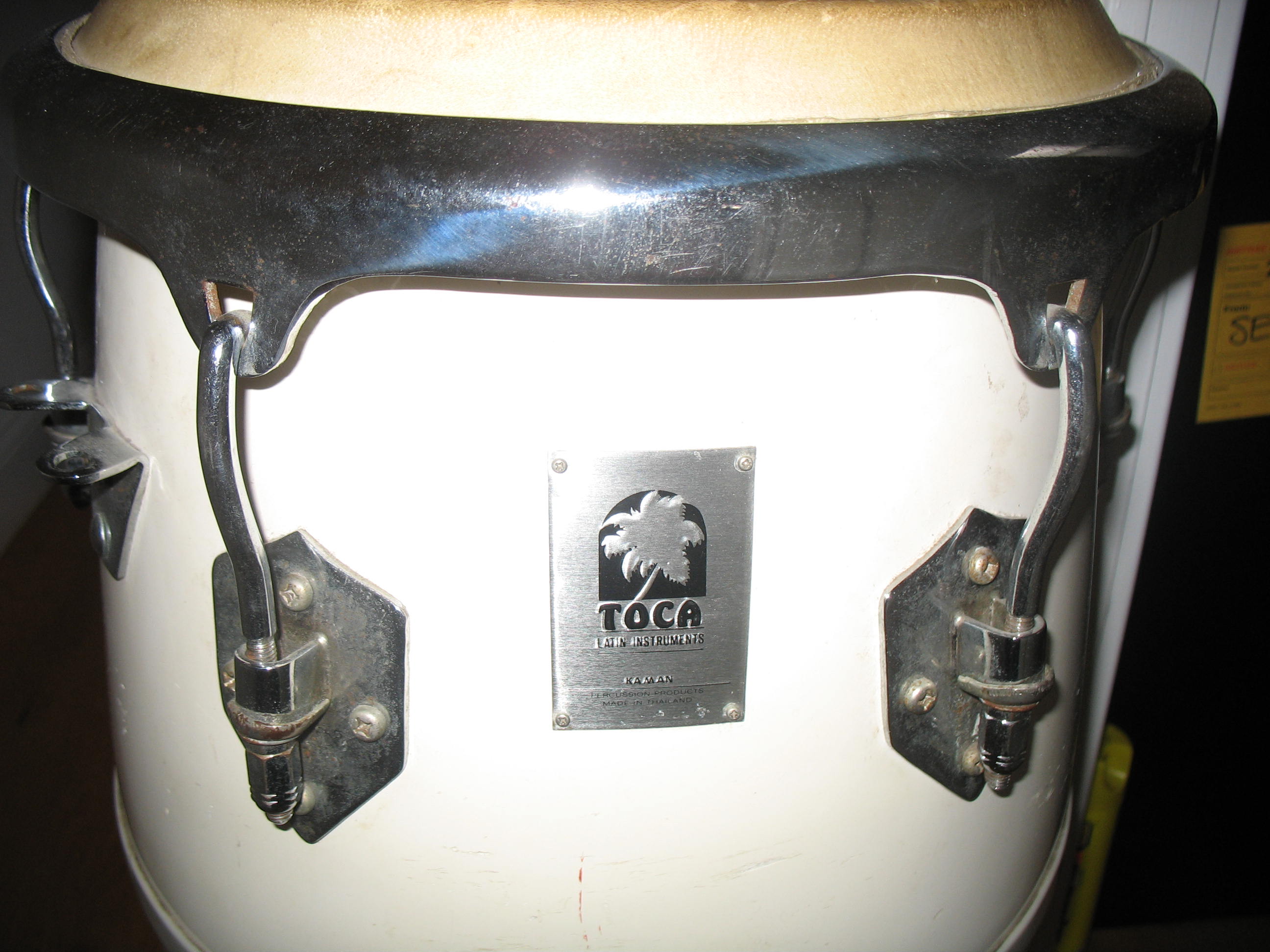 I am new to this site and it has been extremely interesting and informative. I would like help from anyone that might be able to give me info on this Toca and other drum. The Toca I bought 8 years ago used and it really has a great sound and thick head. Does anyone know how old it is? The other drum was given to me as a gift but I believe its origins are from Seattle. It also has a very thick skin and a beautiful sound. Any info on this hand made drum?