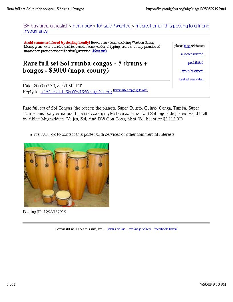 A serious once in a life time sale. Where is that extra $3,000 I have for just this kind of thing? Oh wait, I don't have an extra $3,000. A serious score for someone on an impossible set of congas.