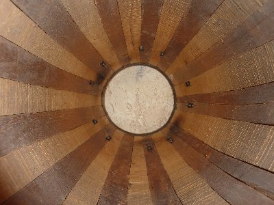 The 2nd photo show some nice curl in the darker wood that I think is Mahogany, not sure about the lighter wood.