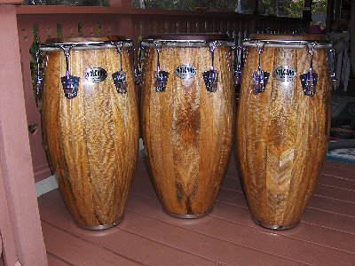 To all that appreciate Volcano Percussion Congas, Here is a new set of Monkeypod congas 14" Monkeypod Boomba. 9.75" Super Requinto with a 10.25" Requinto