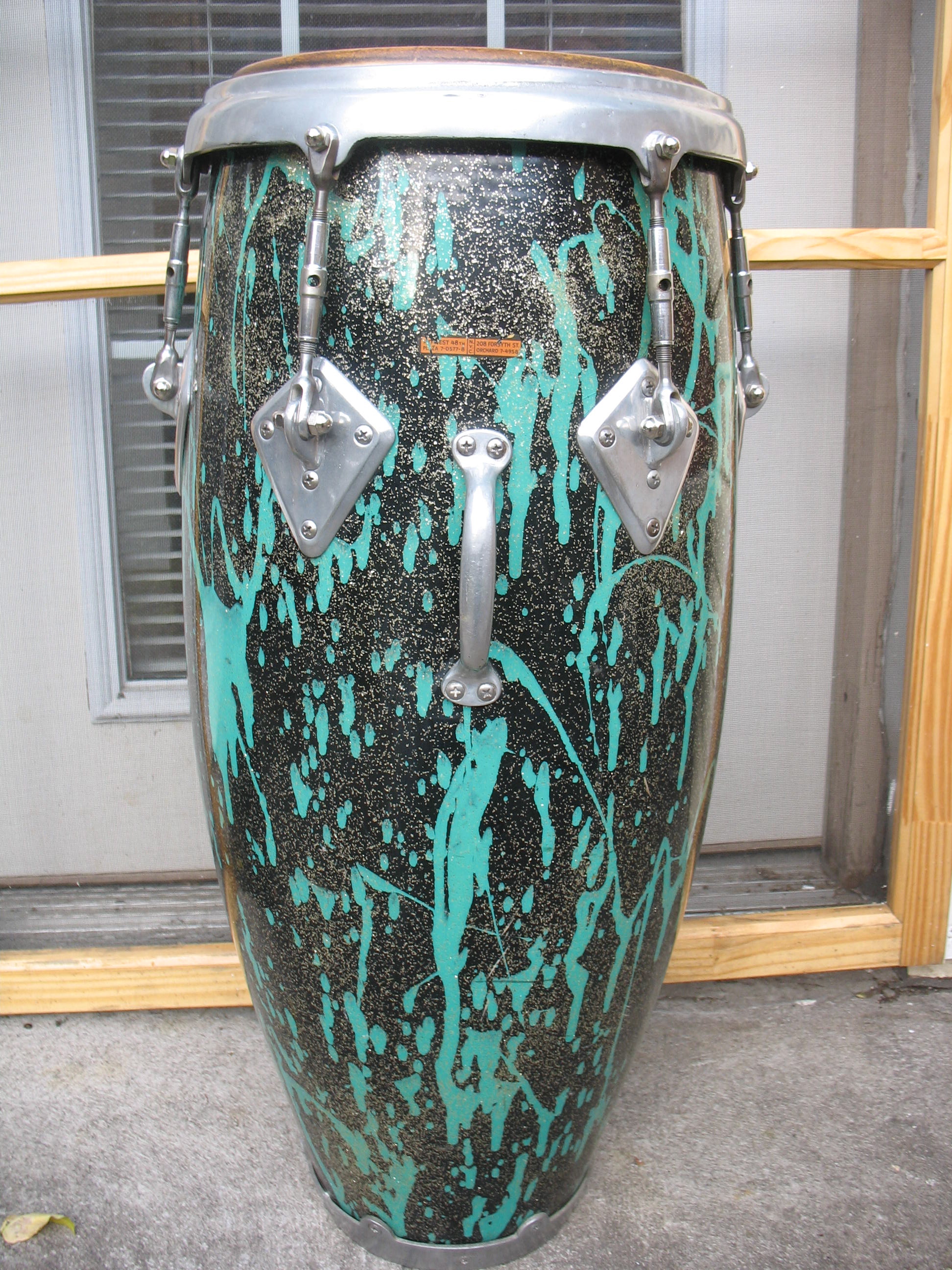 Congabluedog congratulations on an awesome find. That Conga is in incredible condition for it's age. Tell me about the sound, just curious if the skin still has life. Many times when a skin is left unplayed/treated it gets stiff and dry and of course looses it's playability.