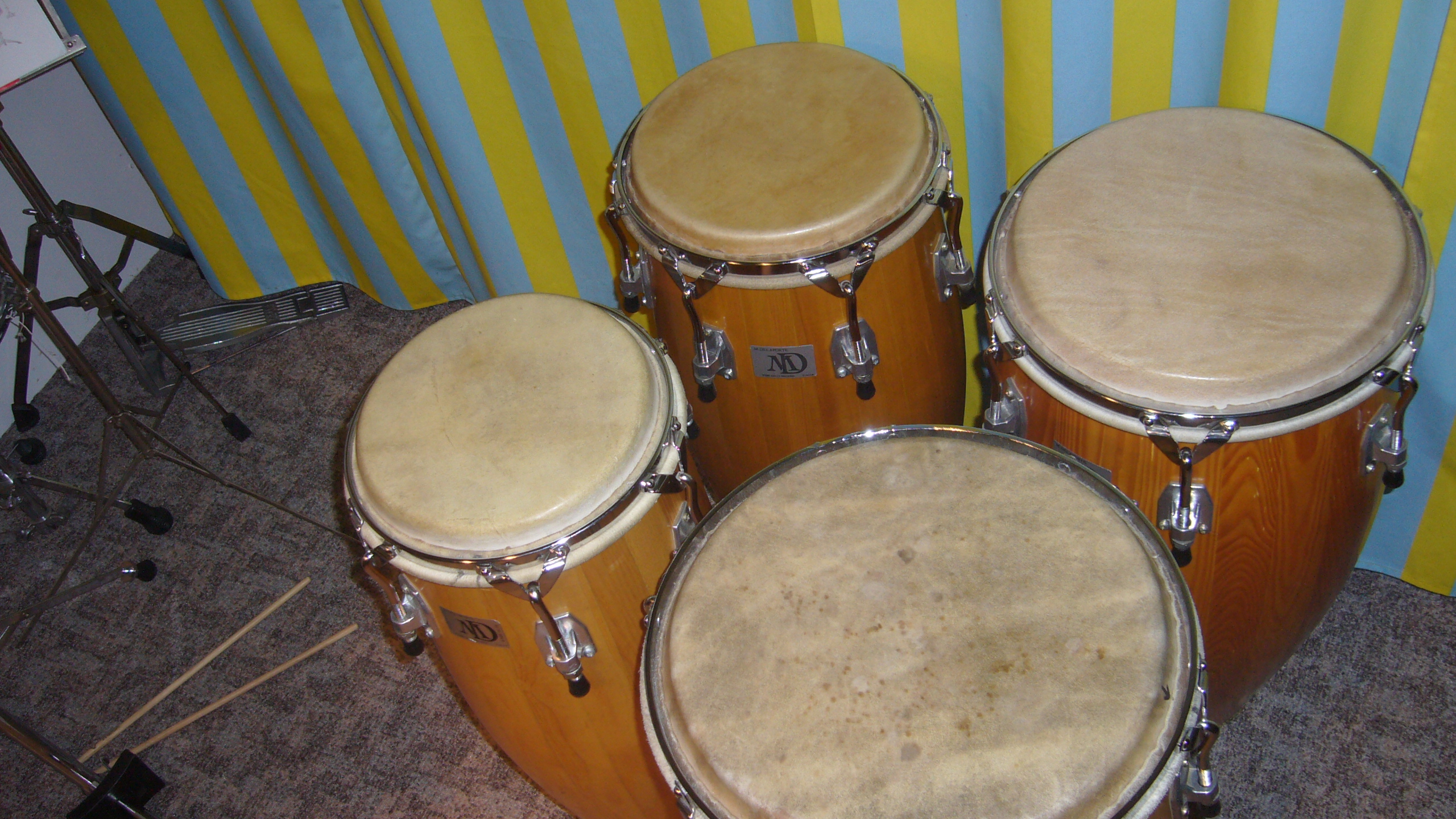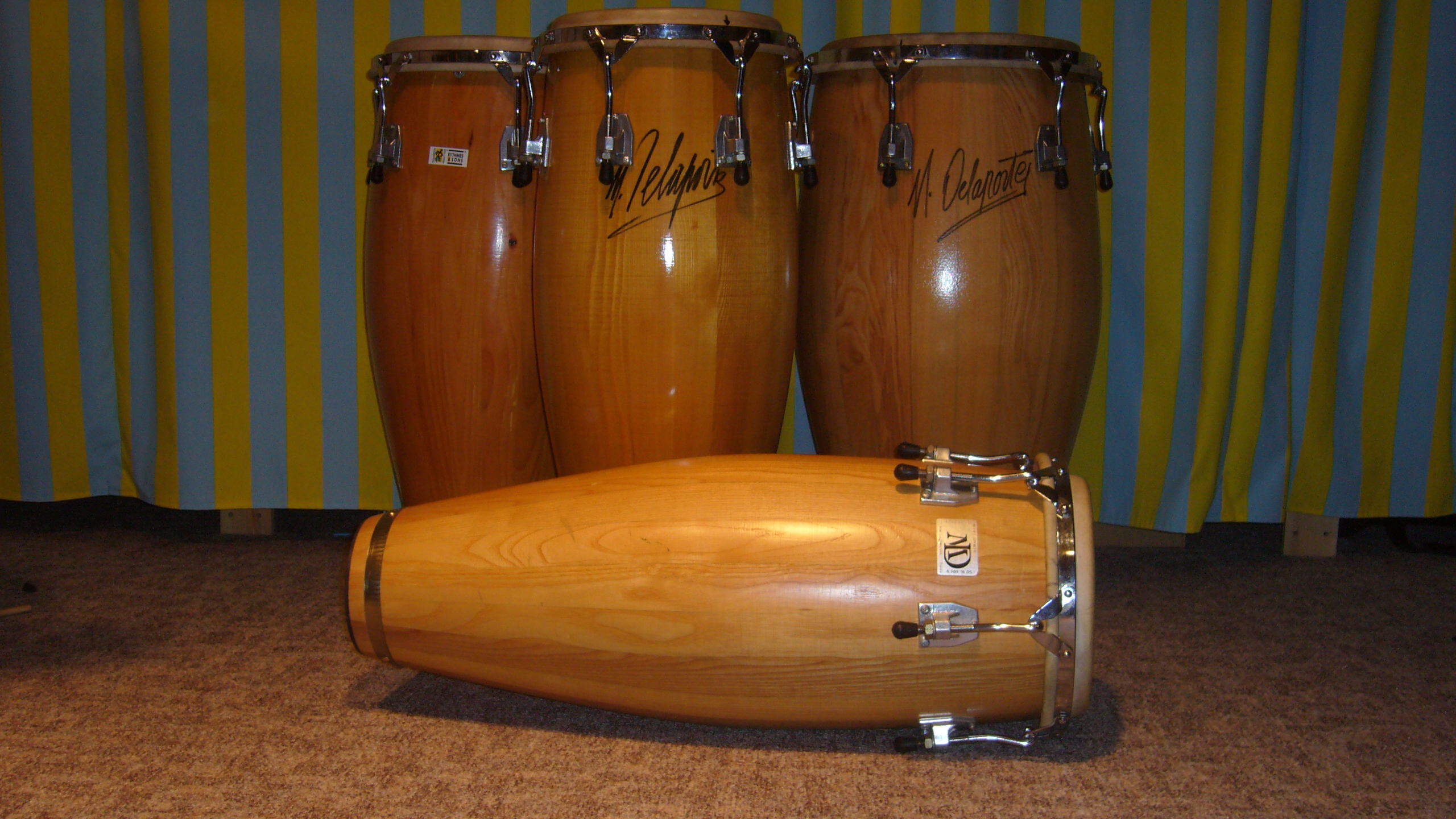 my one and only coherent set of 4 Delaporte congas, from the early 1990s,