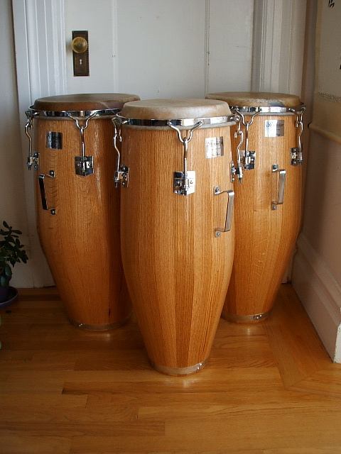 I have had through the years both Valje congas and bongos and Gon Bops congas and bongos. Valje congas always sounded better than did Gon Bops. Gon Bops bongos sound real good as does Valje. Recentlly I got a set of vintage Valje from Lou Vega and they sound awesome. I also got me a set of vintage early 70's Gon Bops congas, I got the super tumba, the quinto and conga are in transit. Here are photos of my California collection through the years and present day.
