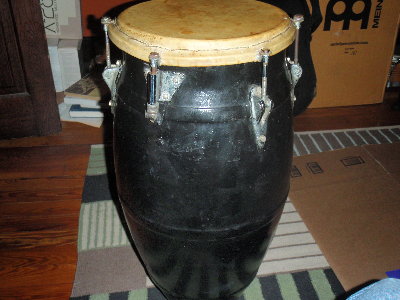 This drum sounds as funky as it looks. It was functioning as a tumba alongside a cracked wood Gon Bops conga (also from '75, also painted black) and complemented it nicely. Definitely a more "folkloric" tone than my LP Classic. Didn't think it was possible with fiberglass.