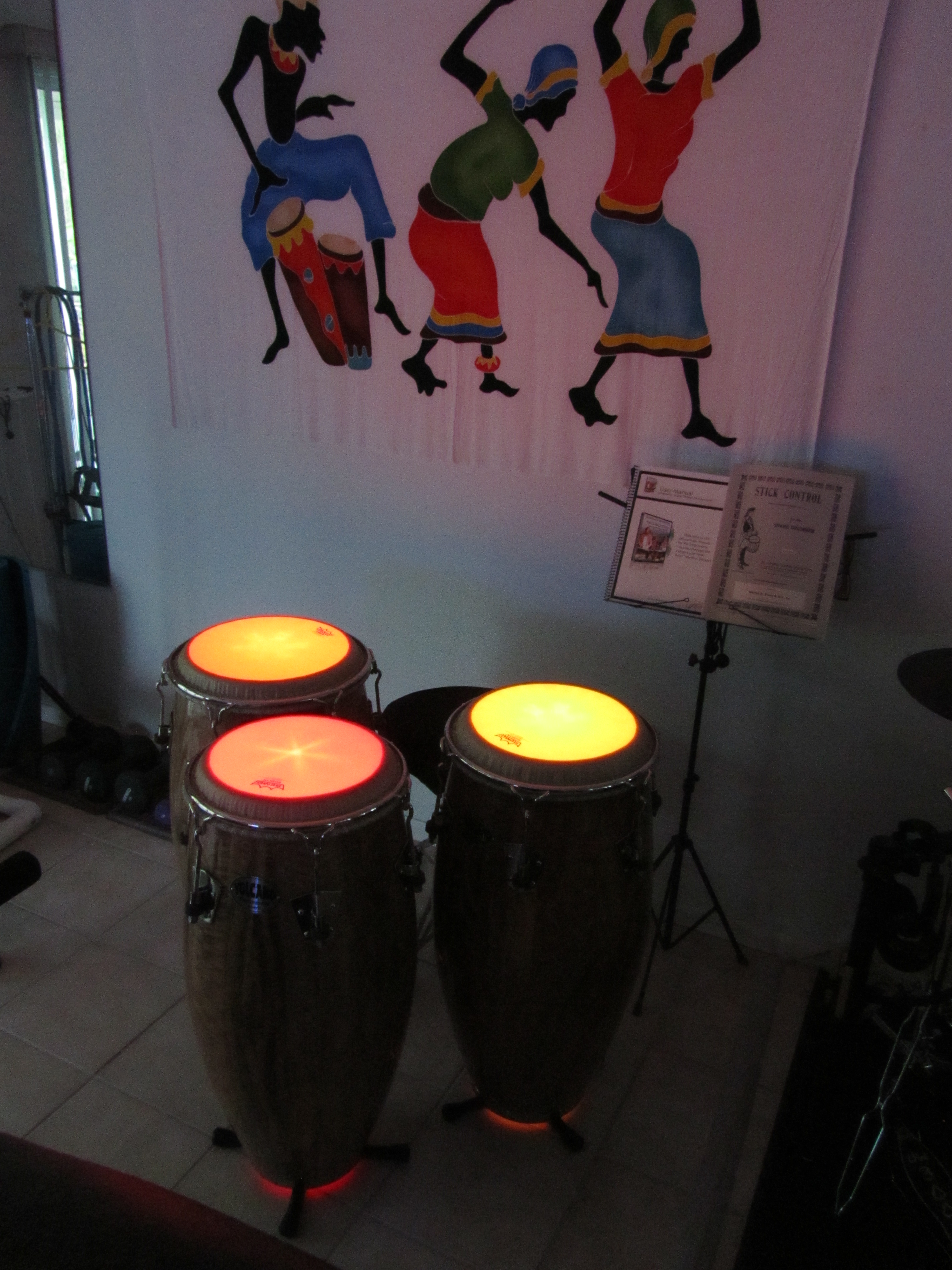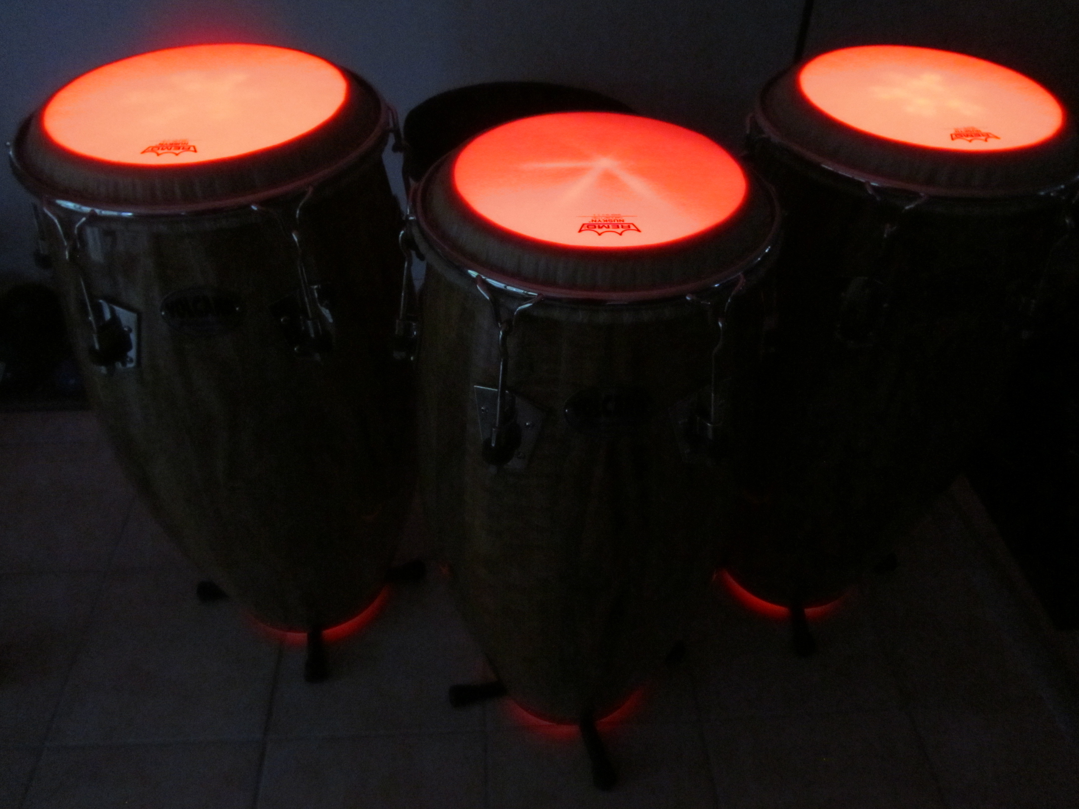 The drums do not slip around on these great little stands because of the rubber they are made of. Some times depending on the music, I am also a heavy hitter and they still work great. I thought I could also make them but for what Larry Beck is selling them for I figured my time to make them was worth more than the price he is charging. Larry is a great guy and he will appreciate all the comments for improvements. His design is simple and they work. I really like these little stands and I won't be luging my other stands anymore. I am getting older and my back is not what it was years ago. I am totally pleased with the stands. I have 4 of them and they came with a nice draw string bag. I am glad I could share this info with all the good people here at Congaplace. Enjoy!