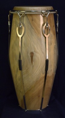 My solid shell tumbas are made of Almendra (Cuban Walnut). Stainless steel traditional crowns, 7 lugs. 11.75" and 13" with large bellies. Co-designed by me.