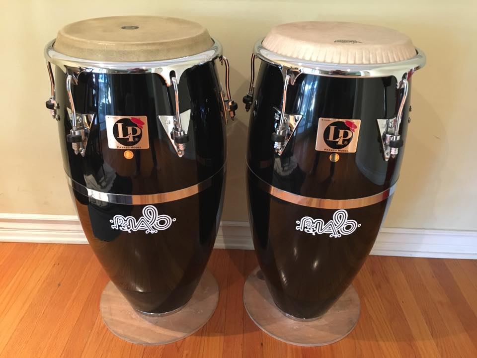 Just picked up these Patatos and am hoping someone can give me a little background on them. I know they aren't early 'vintage' cos they don't have the traditional hoops, nor are they the newer version due to the label not being round or with the 'hat'. I'm guessing the writing inside the Tumbadora (see pic) is the manufacturing date 28-2-91. Also, there is this odd looking label (see pic) stuck to the inside of the Conga, with what appears to be foreign writing.