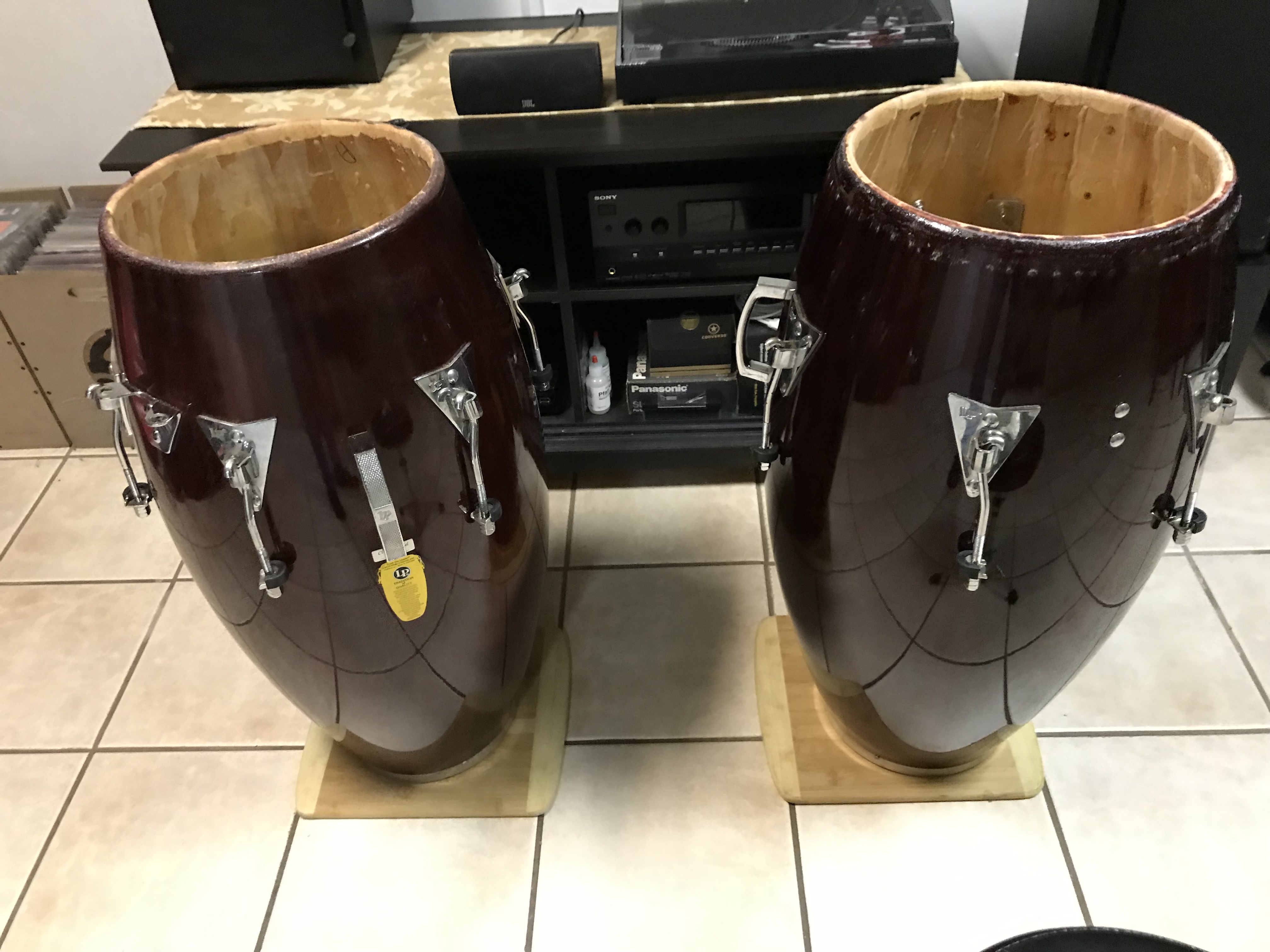 Congueros! This is something I’ve been wanting to do for a while. I finally got my chance. I ordered two 20” Dark Brown Steer Heads from Manito to replace the original heads on my late 80’s LP Classic Congas. The original skins are in great shape for their age, but I’m looking to experiment with a different skin and sound. I ordered 2mm and 2.5-3mm from Manito. Guys, these are gorgeous!!