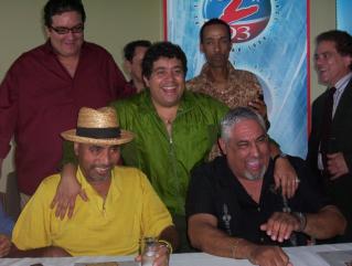 He seemed like had recovered somewhat from his stroke (the word I got from my teacher here in Mass, Freddy Moreno, is that Cachete could barely just shake maracas), but he seemed much better in Puerto RIco...although it seems he's still got some physical effects of the stroke. You can see them in this picture I took with him this summer at the Balcon. His left side of the face seems "looser" than the right side...like it's drooping. My stroke afflicted grandfather had a similar look, so that's why I noticed.