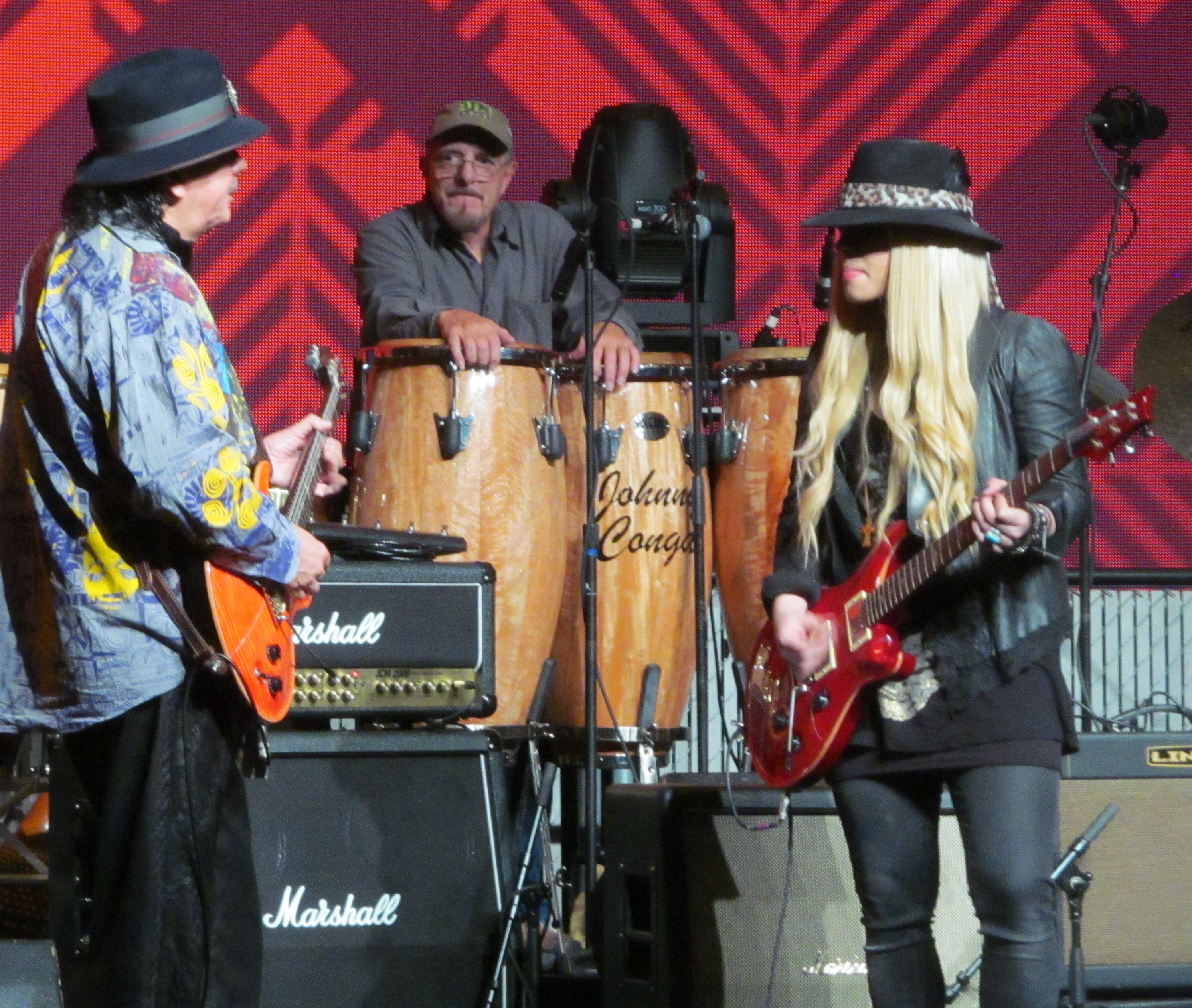 Here is the opening number for the Santana concert...I have 12 videos from this concert...this is called SPELLBINDER by Gabor Szabo..and played by Michael Shrieve band and with Orianthi on guitar...