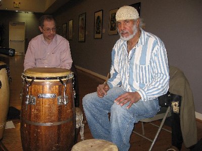 JohnnyConga wrote:RITCHIE "PABLO" LANDRUM.....half Cuban and half African American "Pab" was a student of Julito Collazo..He was my first Jimbe teacher and worked and recorded with Olatunji's drummers and dancers, along with a host of black jazz musicans...here is is on the right with Gene Golden in the middle and a young Steve Berrios this other phote of Afro American drummers 1962 from right to left is Garvin Masseux,Baba Femi, Pablo Landrum and Gene Golden....African Americans were also playing rumba in New York as well as African rhythms.. "JC" Johnny Conga