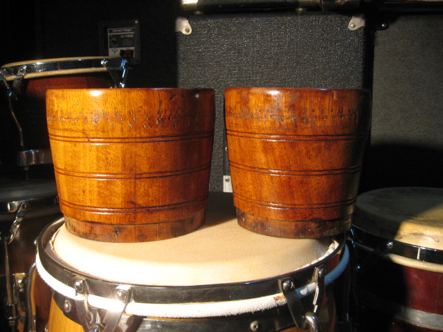 Hey Guys for all those who are interested I cleaned the shells up but did not go beyond that I went with Omelenko and droped them off at JCR. When Cali saw them he got very excitedand stated to me and my friend Rey he modeled his bongos after this type of Vergara. He also said he had a list of guys waiting for bongo like this. Just to let you guys now he has no bongos at this time but is waiting on two sources for wood one is Santo Domingo the other is from Viet Nam. He does have lathes to turn drums of all sizes on downstairs so they will be available in the near future. As soon as I get them back I will post the photos. Thanks guys.