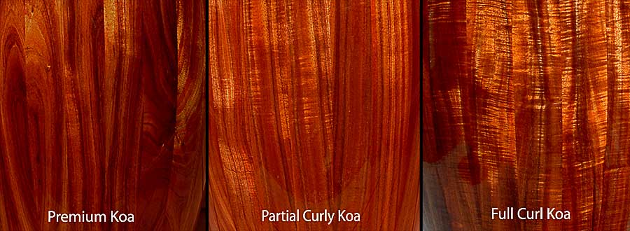I hope this answers the question. The Full Curl Koa wood is the rarest and most beautiful and is used on Volcano Percussion's top of the line Congas and the "Mr. Bongo" Jack Costanzo Limited Edition Bongos . ABAKUA thanks for the complement.