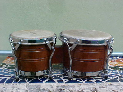 This set belonged to the bongocero of Manolito y Su Trabuco (Cuban group), they came to Miami did a TV show and a couple of gigs in a Calle Ocho club. I traded an LP 35th Anniversary fiberglass for this one, as he wanted a fiberglass LP. I don't know if its Cuban, as that group travels abroad. The wood is beautiful and is a big size 7" macho, 8 1/2" hembra. Cuban hardware, crowns and Cuban bottoms. Very well made bongos. Awesome sound. I will let it go for $350.