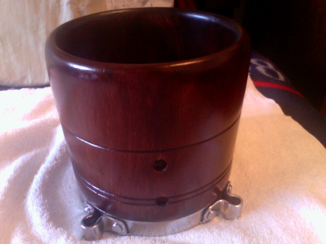 Here are photos of my JCR, great sounding bongo'. Big size, macho 7" hembra 8 7/8". It's got that Cuban look, Cuban bottoms with rivets, very strong constuction. At one point it belonged to Juancho here in the forum. Got it from Mario, is a very early JCR from the late 70's according to Cali. In prestine condition. Caribbean Caoba.