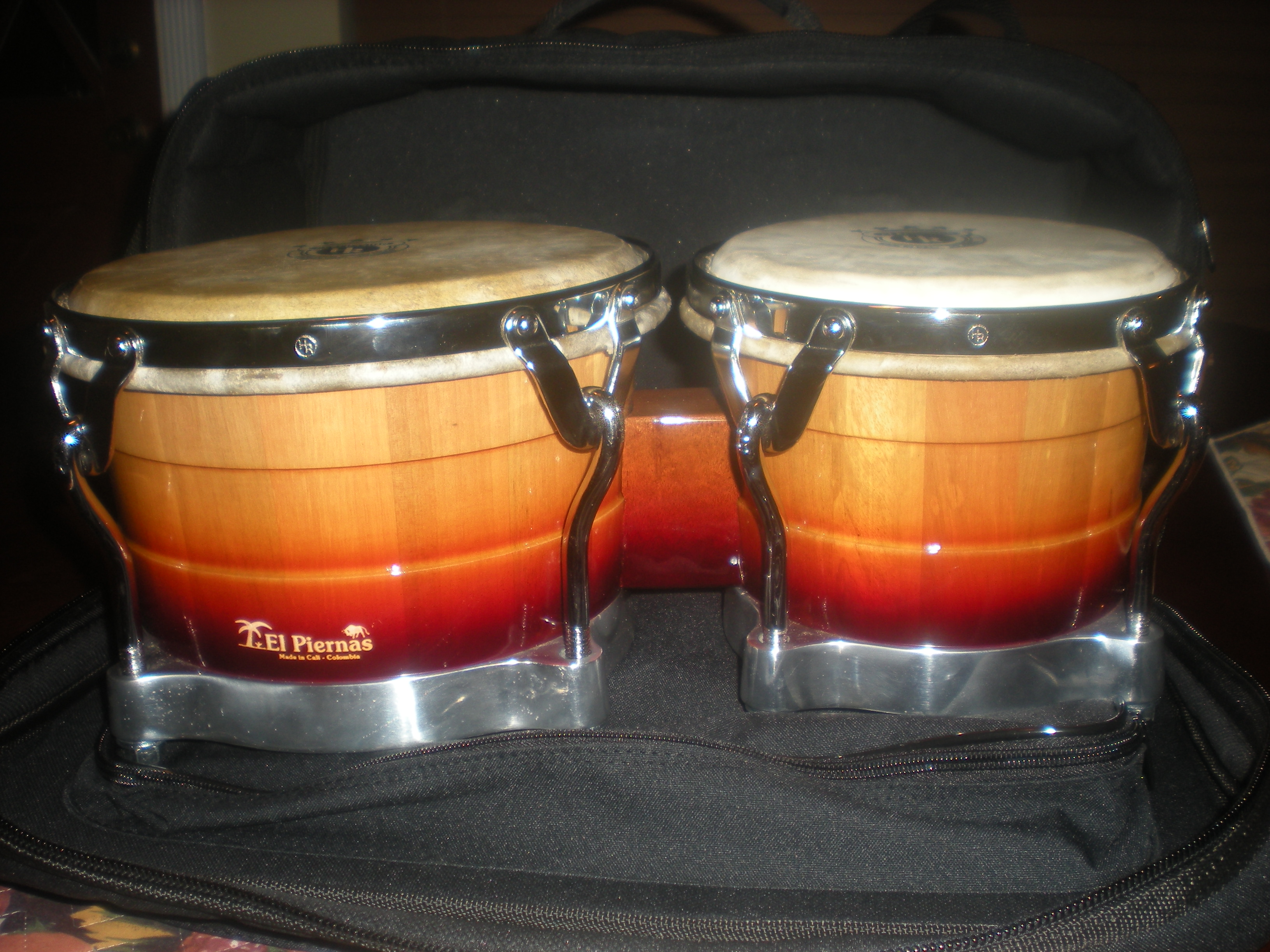 Just got here from Colombia courtesy of my parents. Hector Rocha made these for me My mom chose the color scheme for me. The Bongos came with a beautiful case wih the HR logo many pockets for bells etc.