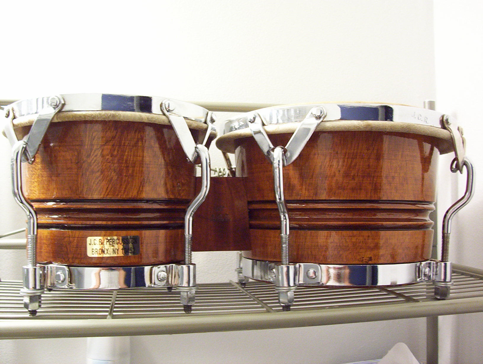 Omelenko1 wrote:Recently refinished, new mule skin on macho JCR bongos from 1978. They don't make them like this anymore. Macho 6 3/4", hembra 9". Very high crisp sound on the macho with the new mule, the hembra sounds like a tumba. Unfortunately this Caoba wood is not available anymore. These are incredibly beautiful, awesome sounding, made to last 100 yrs. bongos. Cali Rivera at his best. SONIDO CRIMINAL!
