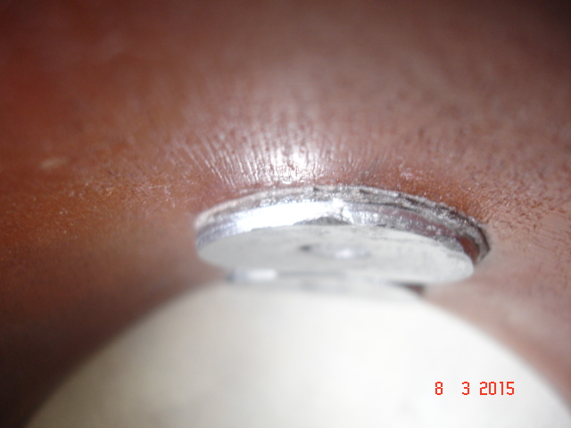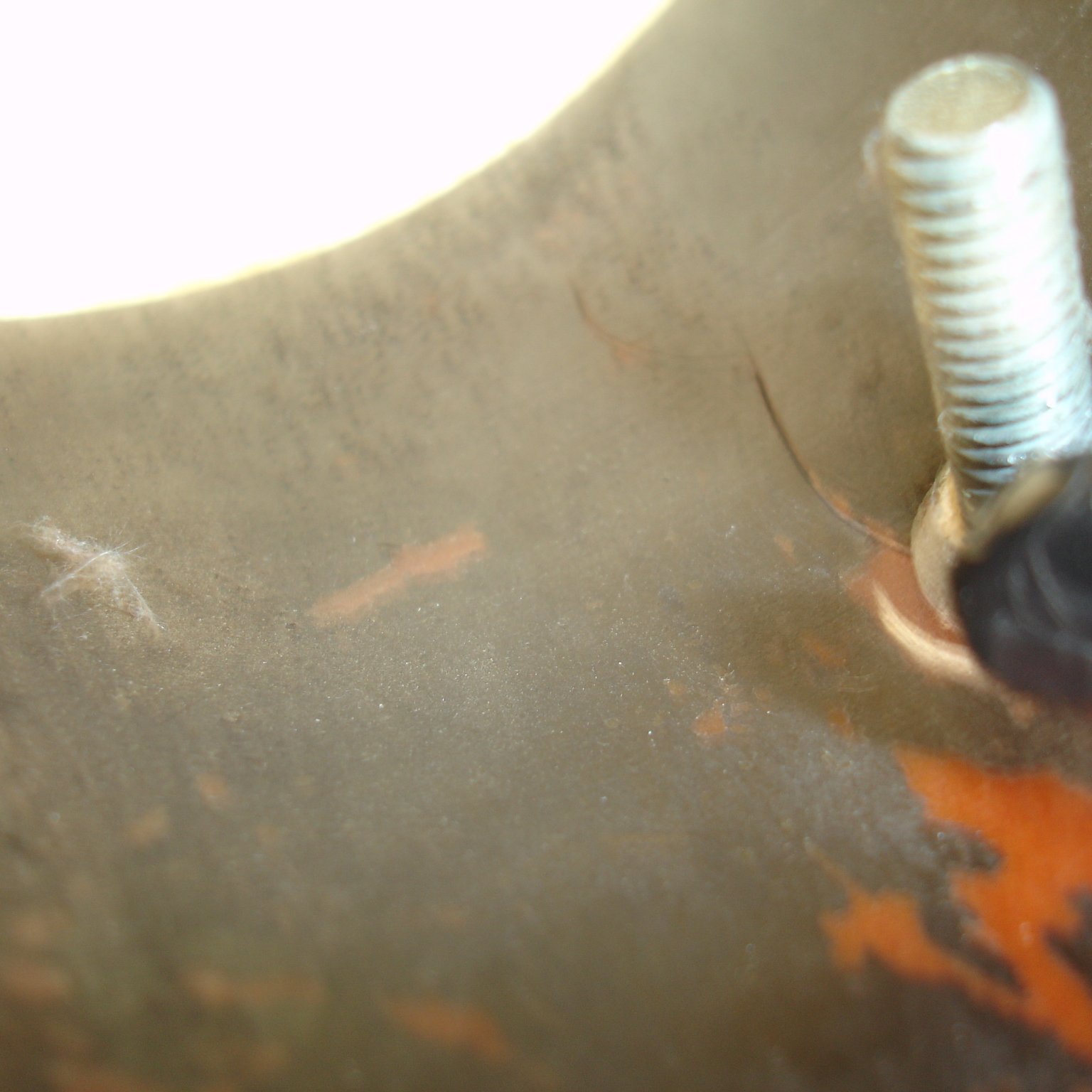 For backing plates I used some sturdy big washers that i hammered to the proper curvature. Because i could not make this perfect and because I had decided to glue the washers on the shell in order to improve strength around the crack, I put some pressed paper from an amazon box, soaked in epoxy resin between the washer and the shell and left it tight overnight.