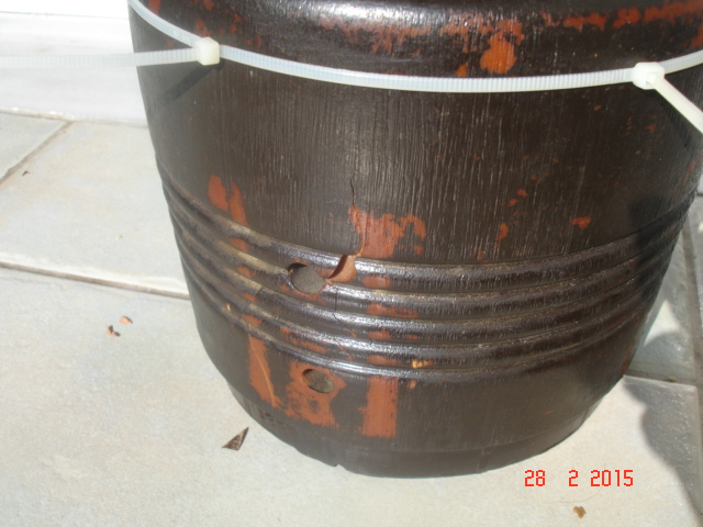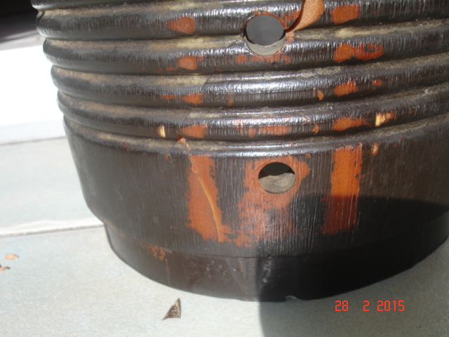 My next concern is about original colors and logo badges position. Except from brown has it been produced in other colors? I have removed about 90% of the color (not shown on pictures) with alcohol alone and the underlying orange-brown color of the shell is nice. I may leave it like that or repaint it. What kind of paint to use is another question..