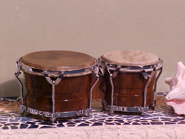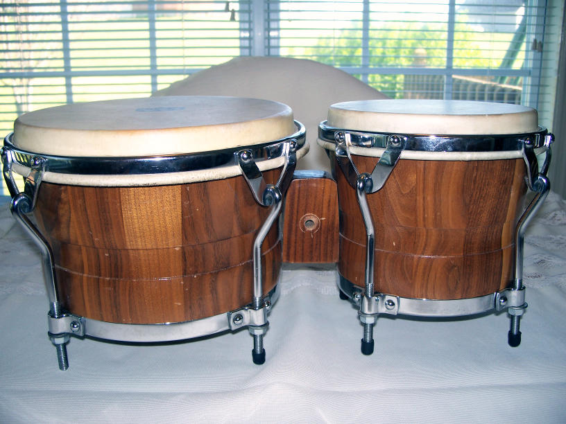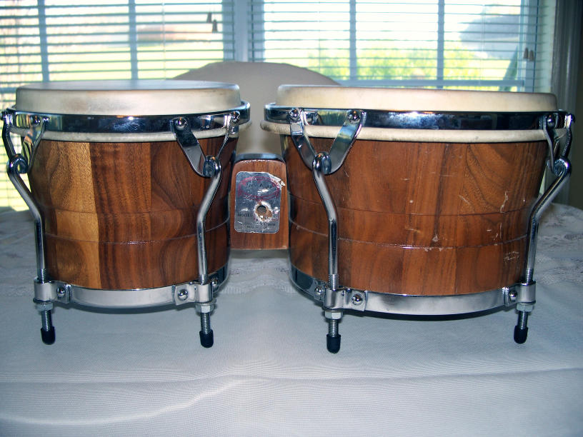 I'm about to eBay this set of Gon Bops bongos and would like to know how much I should ask for it. They are walnut and the only flaw is where a previous owner drilled a hole through the bridge - exactly through the GB label where the model # is shown. I can't tell the date it was made. From what I can see of the label the model number starts with the letter "I" and other than a few scratches the the drum is in great condition. The shells are in round and no cracks. I'll post some pics.