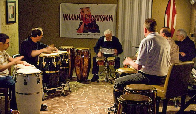 I was blessed last Saturday to have the great Volcano Percussion artist "Mr. Bongo" Jack Costanzo come to my drum studio in my home. We had a blast. Jack is a fantastic drummer and we all learned a lot from him. We really had so much fun! He is truly a delightful person. He signed our bongos, CD's, Magazines, drum heads, photos. We also had percussionist Terry Reimer from World Percussion And Rhythm Magazine, Percussionist Jim Quin, Jazz Great - Drummer/Percussionist Grant Strombeck, Percussionist Miguel Angle and his Father, Percussionist Miguel Valsquez, Percussionist John Doti, Percussionist James Costanzo, and some of my students. We had the time of our lives. Enjoy the photos.